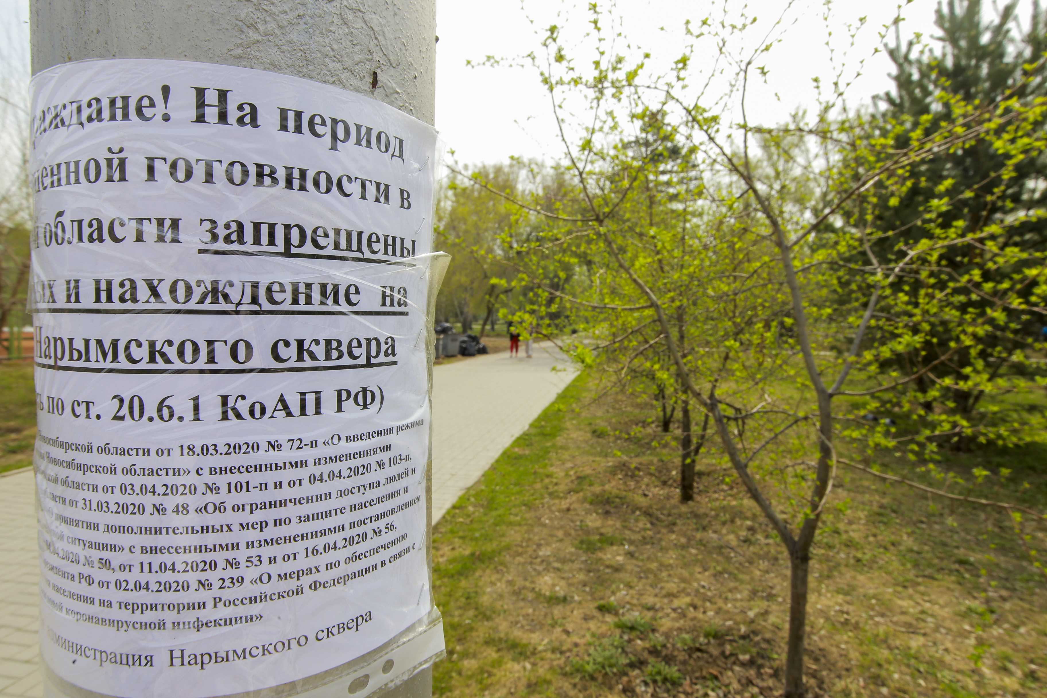 Входы в зелёные зоны обтянули сигнальными лентами, рядом приклеили объявления о запрете прогулок. После этого прохожих в парках и скверах поубавилось. Но, разумеется, есть и те, кто игнорирует запрет — с ними проводят профилактические беседы. Также при необходимости на нарушителей составляют протоколы по ст. 20.6.1 КоАП РФ (невыполнение правил поведения при чрезвычайной ситуации или угрозе её возникновения).