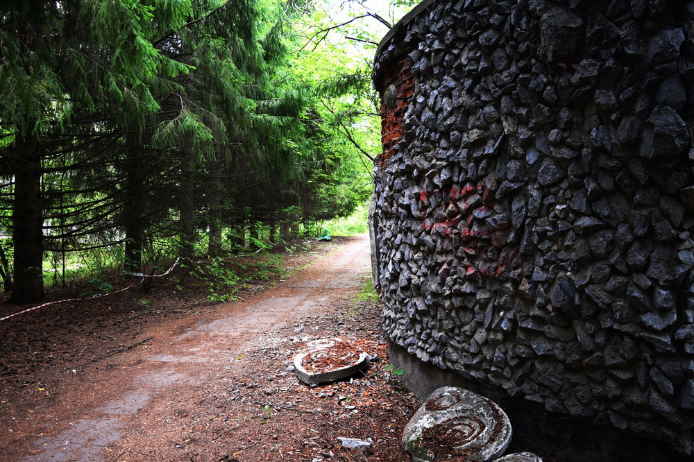 Одним из интересных мест по праву можно назвать заброшенный мраморный карьер. Он представляет собой большой Т-образный, уходящий вглубь амфитеатр, с высотой ступеней около метра. По легенде мрамор потрескался из-за взрывов при разработке новых карьеров, а потому оказался ненужным. Со временем внизу образовалось небольшое озерцо, но дальше карьер не затапливает, поэтому тут активно растут молодые деревья. Любителям красивых фотосессий будет интересно погулять по заброшенному ангару, который своей растительностью напоминает Парк Юрского периода. Огромные лопухи дикого папоротника создают замечательный пейзаж для фотографий. Наверное, со временем природа и здесь полностью поглотит следы человека.