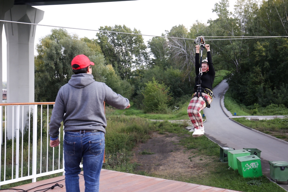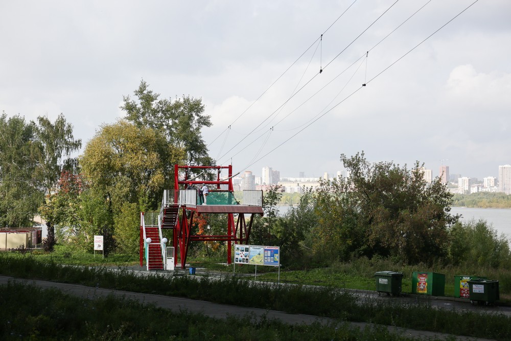Канатная трасса располагается над Бугринской рощей, а затем спускается к Бугринскому мосту и пролегает прямо под ним. Если вы хотите ощутить колоссальный выброс адреналина, то обязательно попробуйте прыгнуть с этой тарзанки.