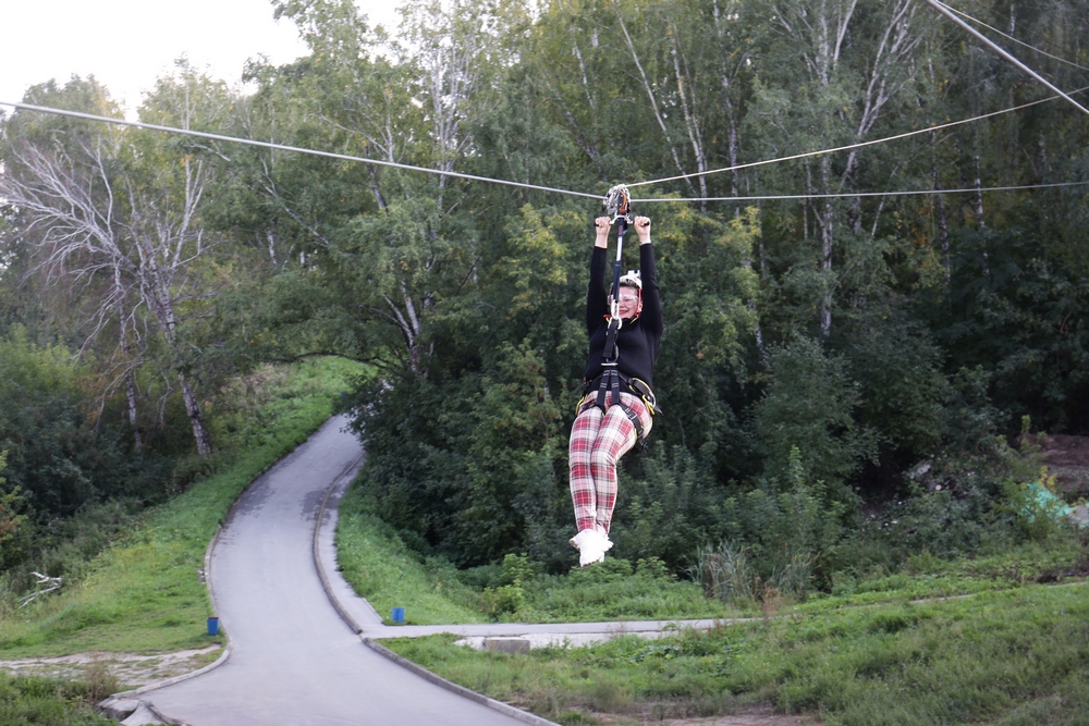 ZipLine — это экстремальный спуск с высоты пятиэтажного дома на скорости 70 км/час. На тебя надевают специальное снаряжение, и ты движешься в воздухе по стальному канату с использованием силы земного притяжения. Длина трассы — чуть более 200 метров, но самое главное здесь — маршрут.