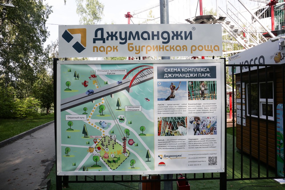 Аттракцион находится в центре Бугринской рощи, где недавно построили «Джуманджи парк». На входе нужно купить билет. В будние дни полёт стоит 300 рублей, в выходные — 500 рублей.