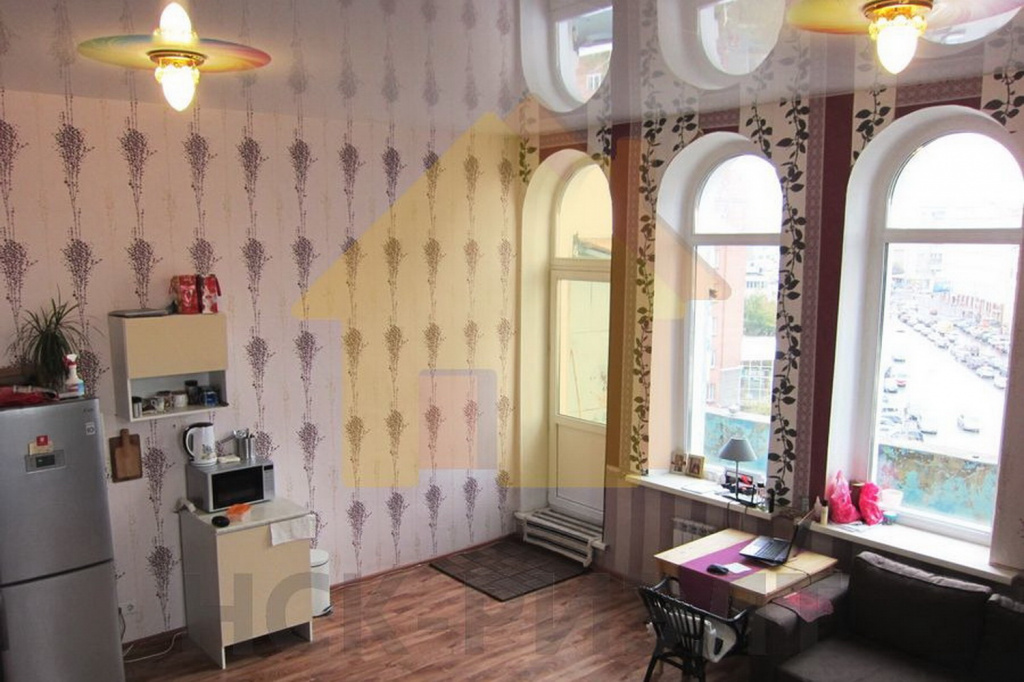 Студия площадью 41 кв. метр на шестом этаже в доме на ул. Салтыкова-Щедрина, 1 в Железнодорожном районе. «Сталинка» рядом с ЦУМом. В квартире пять панорамных окон-арок с видом на центр, на две стороны. Высота потолков более 4 метров, поэтому можно сделать жилую антресоль. К квартире прилагается терраса.