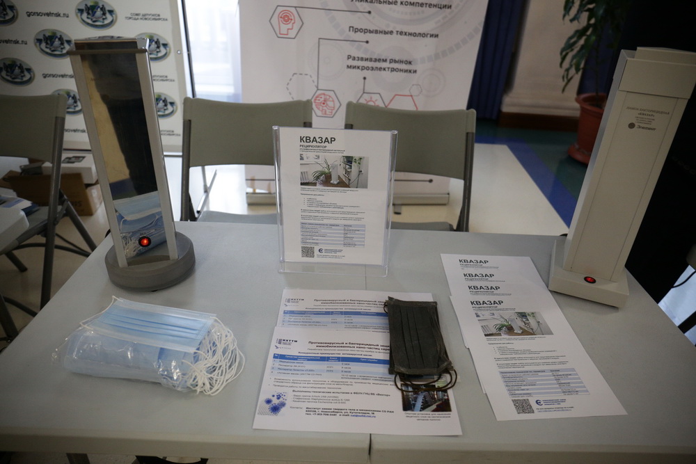 Тут же — стерилизатор для обработки поручней, по соседству — рециркуляторы воздуха. Спрос на эту продукцию сейчас очень большой, заказов — на год вперёд.