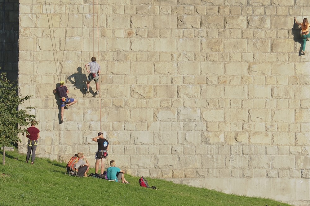 Вероника Иванова: Алексей, наша редакция вас узнала во время съёмки телевизионного сюжета. Тренировки были на Октябрьском мосту. Многие гуляющие по набережной частенько видят альпинистов — людей, которые взбираются на опору моста. Я так понимаю, что это давно известное место тренировок, поскольку скал особо в Новосибирске нет. Как вы тренируетесь? Это действительно похоже не скалы?