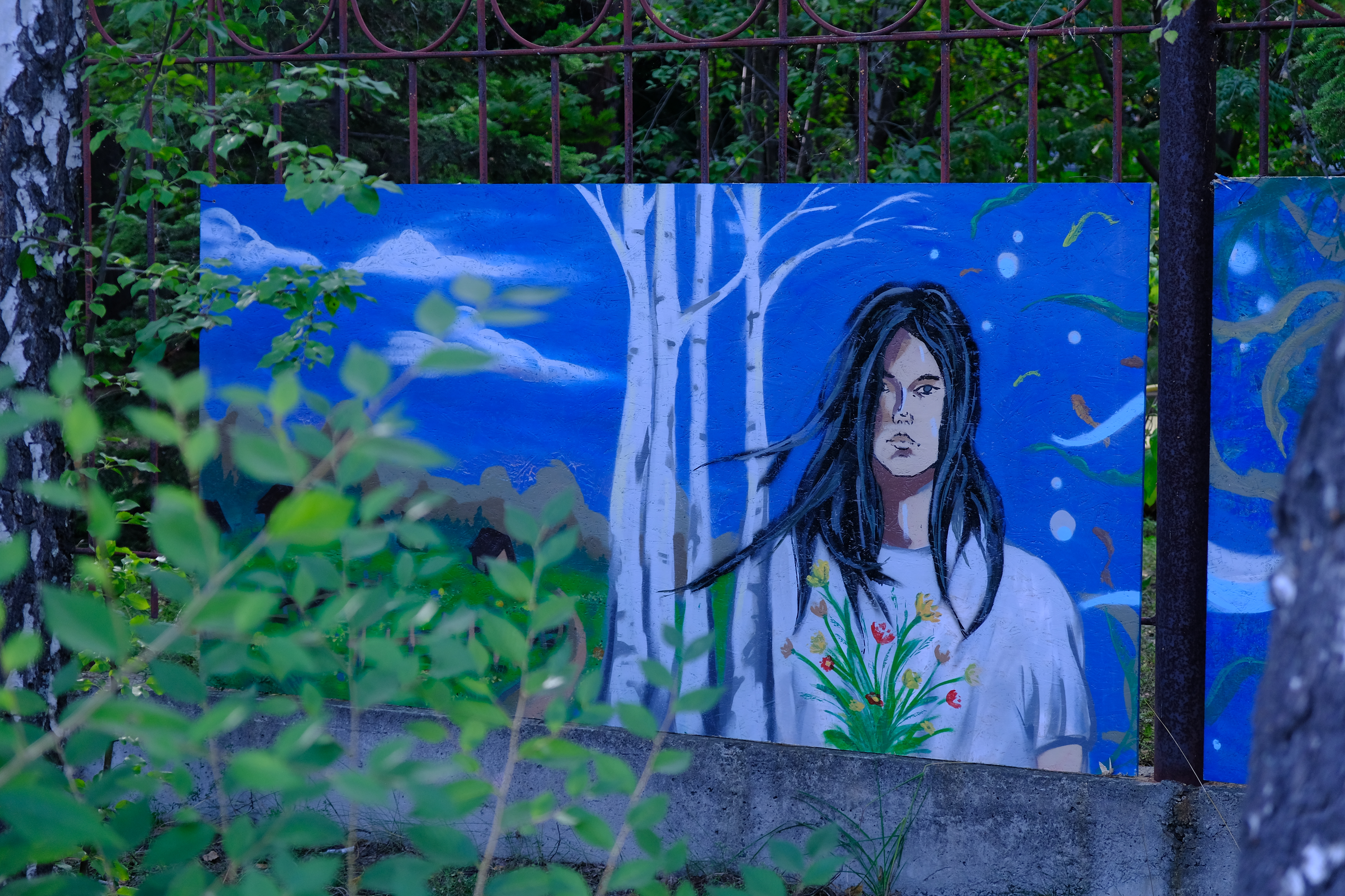 Марьям Гулиева: Это аллегория! Ещё у нас на заборе висят три символа славянских богов. На тот момент, когда этими символами пользовались, русских на этой территории не было. Но мы решили их оставить, пусть они сейчас несут свой смысл: защищают и оберегают. Как и духи-хранители, которые оберегают остатки Чемского бора, который за последние 100 лет в 100 раз уменьшился, к сожалению. Если художники постарше брались за реальные истории, то молодые придумывали свои истории. И волк — это не столько легенда, столько аллегория. То же — жар-птица, которая символизирует возрождение этих мест.
