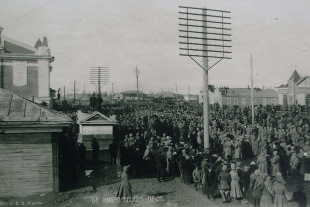 Сергей Чумаченко: Скорее это было местное решение о проведении праздника. Но известно, что 27 марта Петроградский совет принимает обращение к воюющим народам о прекращении войны, о том, что народы должны прекратить войну. Но это скорее совпадение, праздник Свободы, который прошёл в Ново-Николаевске 27 марта 1917 года — это был местный праздник. Хотя наш Ново-Николаевский совет рабочих и солдатских депутатов присоединился к воззванию петроградского совета.