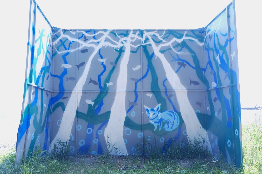 Марьям Гулиева: Да, основной массив арт-объектов будет сделан из топляка. Но, например, у входа на пляж стоит старое заброшенное кафе. И на нём художники изобразили некую чудо-рыбу. Её голова нарисована с помощью аэрографии, а скелет сделан из топляка. Это смотрится немного по-детски, но внимание привлекает. Каждый объект будет снабжён QR-кодом, с помощью которого будет рассказываться история о том, что это за объект и с какой легендой он связан.