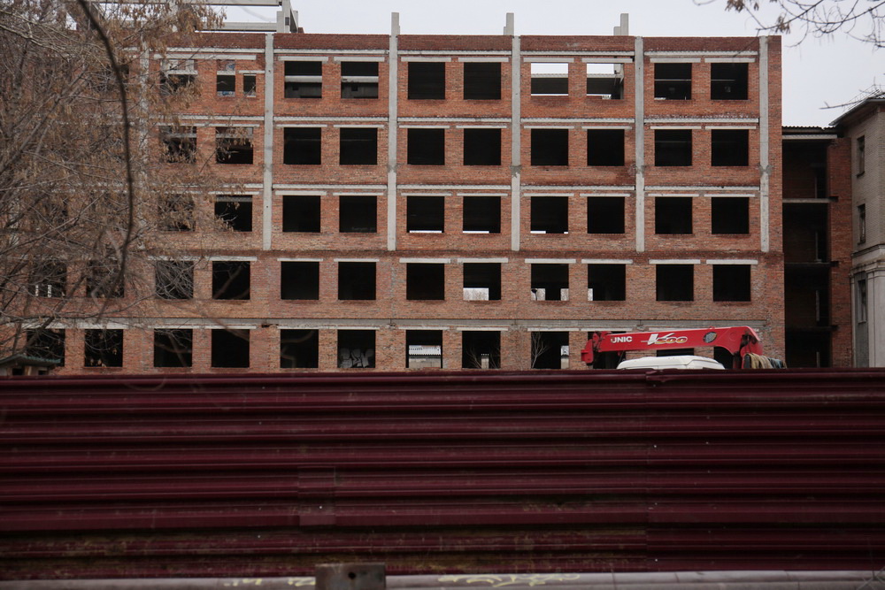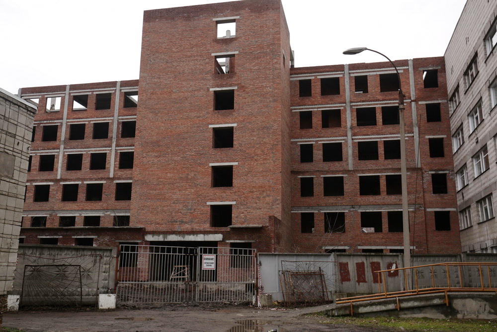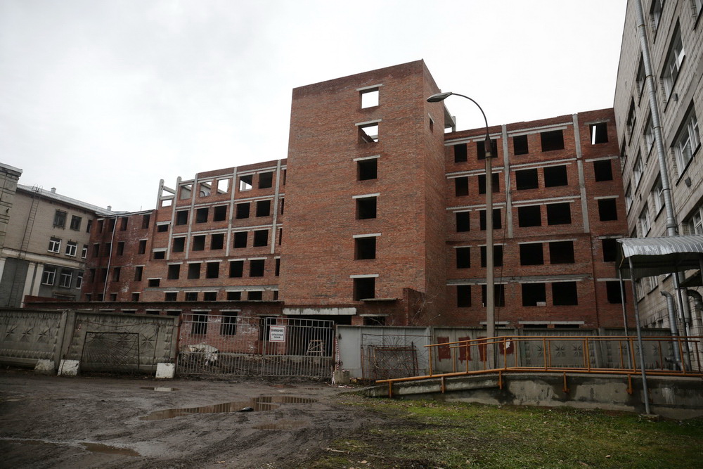 Расчищать территорию, прилегающую к корпусу-долгострою, начали ещё в октябре. Сейчас площадка уже огорожена, рабочие готовят объект к завершению реконструкции.
