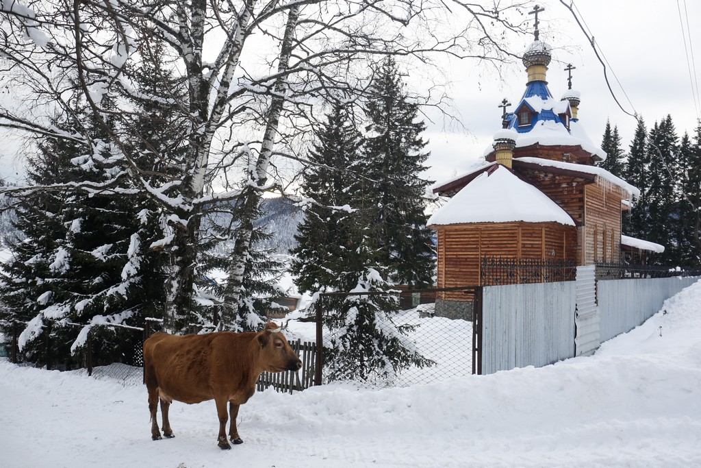 Точку в фотоисториях с животными за 2019 год поставила рыжая корова из села Артыбаш, что на Телецком озере на Алтае. Она разгуливала по снегу как ни в чём ни бывало и была совершенно не против, что её сфотографируют для репортажа.