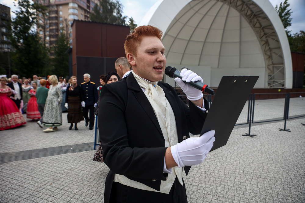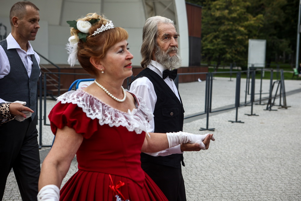 Костюмированный бал устроили в Центральном парке преподаватели и воспитанники школы светского танца «Отражение».