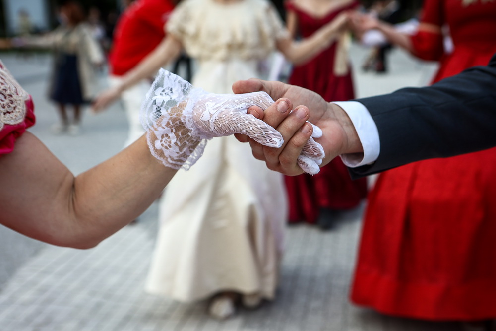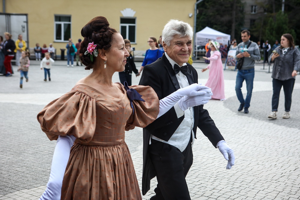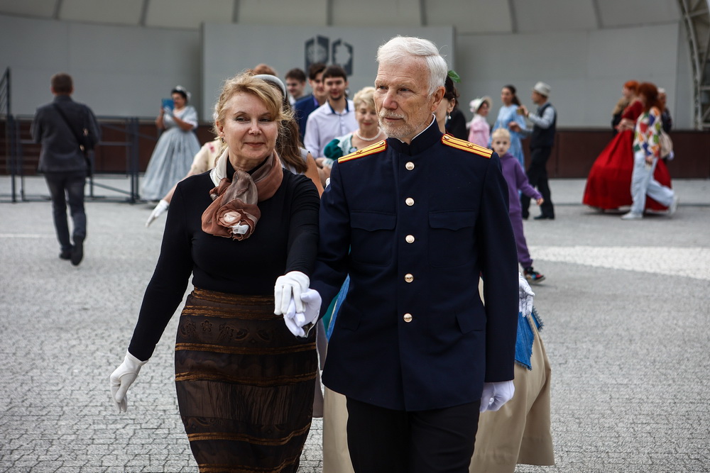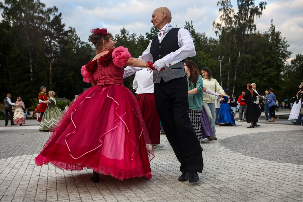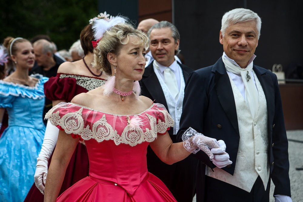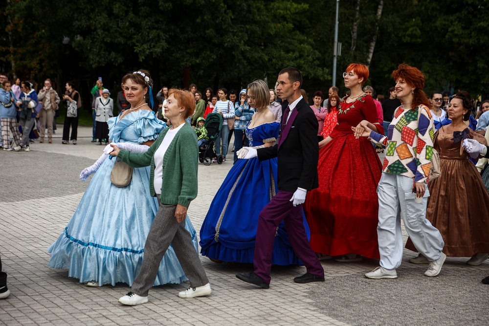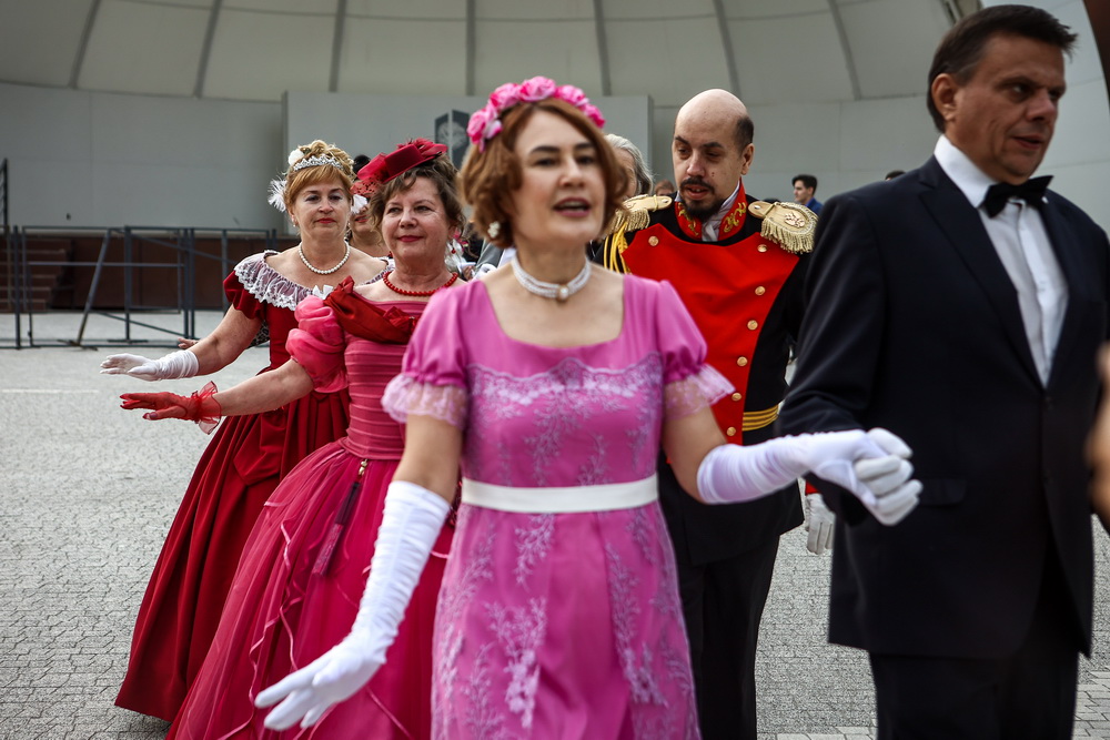 На балу исполнили польку, полонез, испанский вальс. Стать участником танцевального вечера мог любой прохожий — достаточно было повторять несложные движения за инструктором.