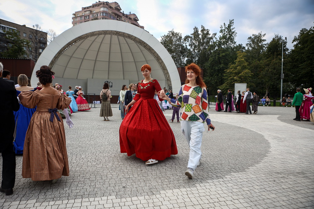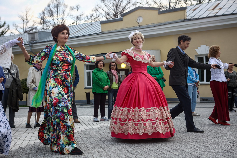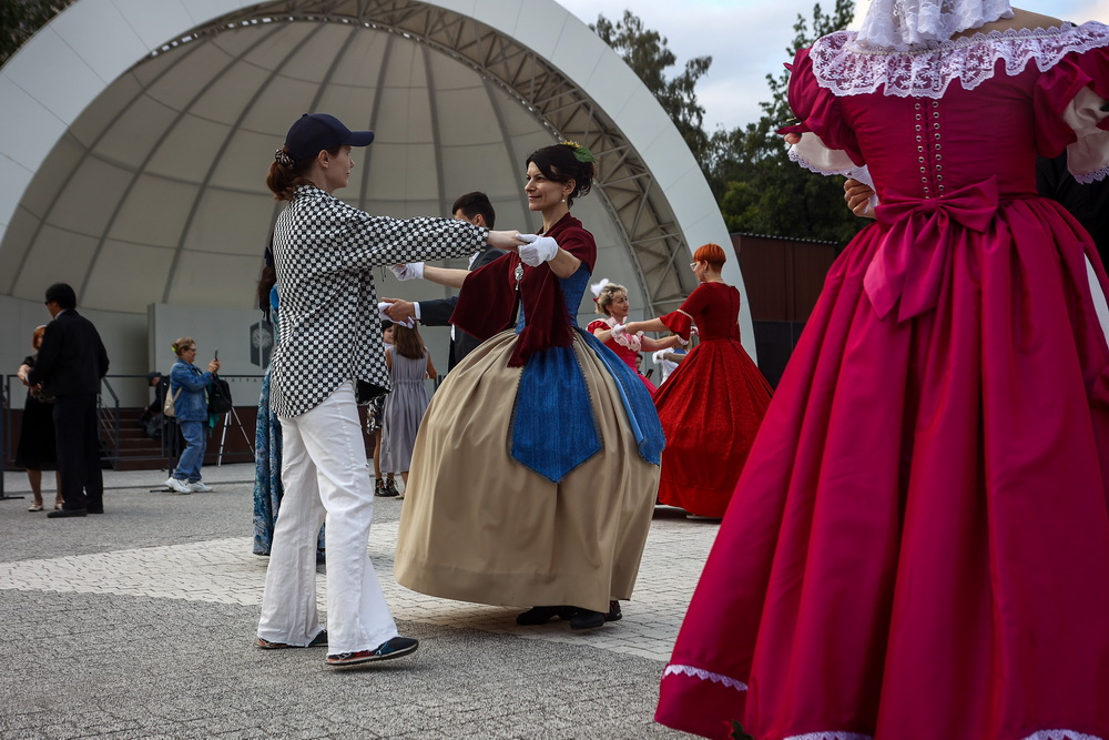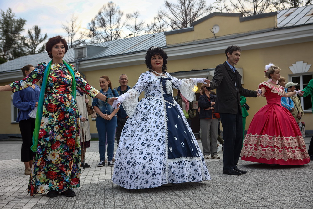 Всё лето кадрили и мазурки разучивали здесь же, под открытым небом. В заключительный вечер дамы пришли в платьях в стиле ампир, а кавалеры — во фраках и мундирах. Такой дресс-код создаёт особое настроение, считают поклонники исторических танцев.