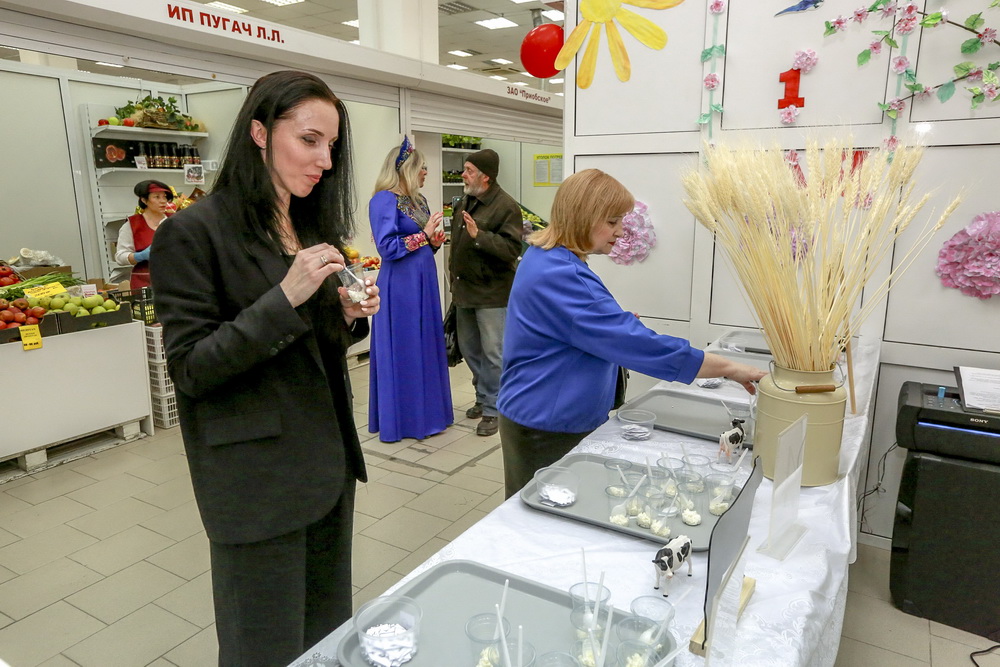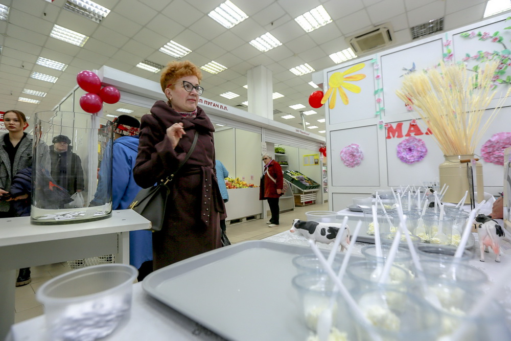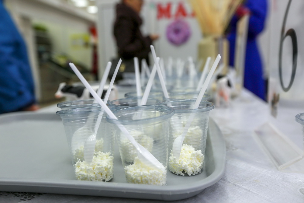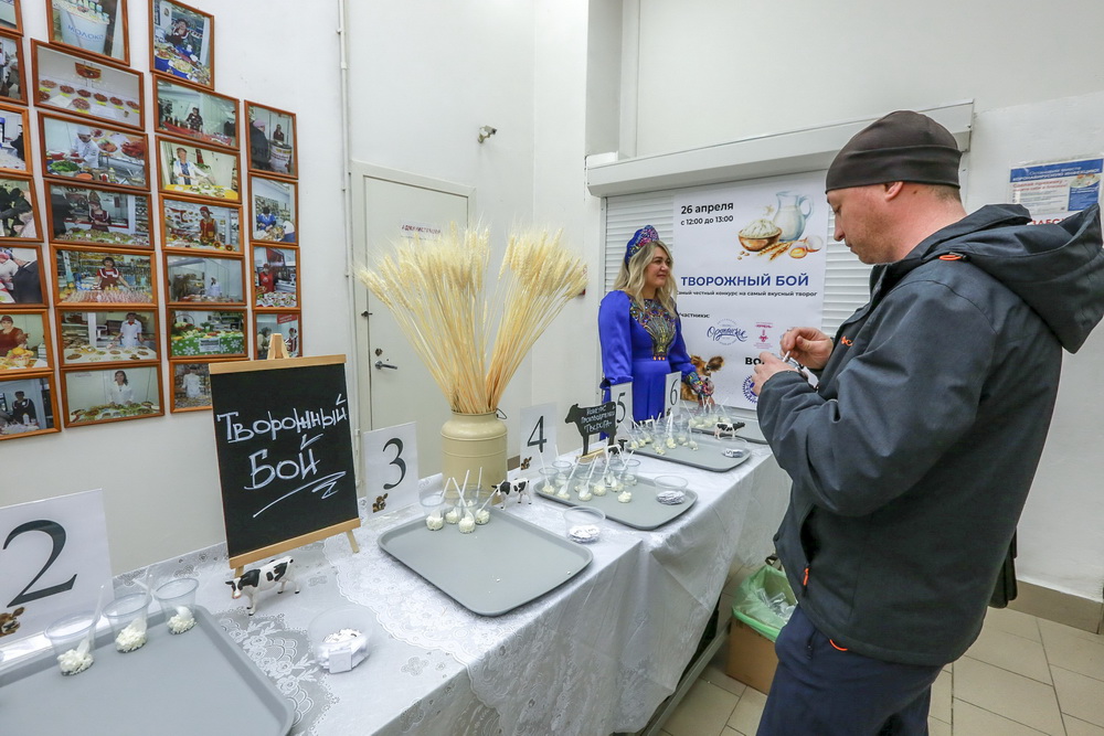 «Творог 5% жирности. Покупатели будут пробовать, и лучшая продукция от покупателя с бирочкой будет отправляться в накопитель. После чего подсчитываются голоса, и таким образом выбирается лучший производитель», — рассказала управляющая городской социальной ярмаркой №2 Елена Казанцева.