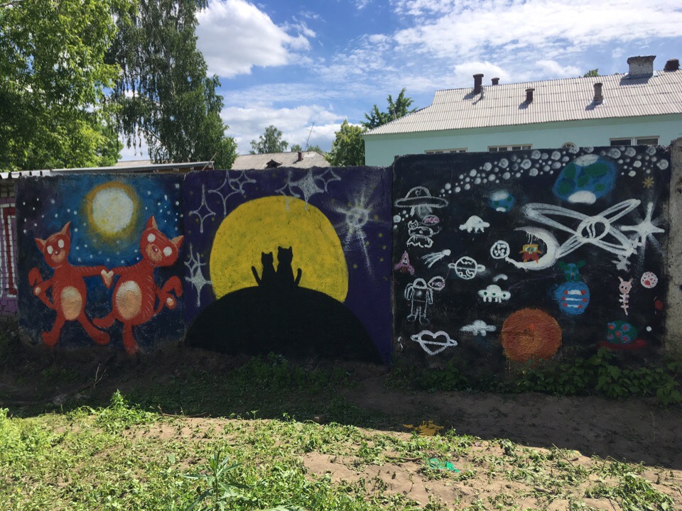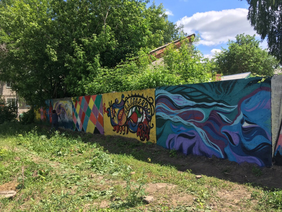 В прошлом году мы раскрашивали бетонную стену в соседнем дворе. Волонтёров было больше 25 человек — молодёжь, дети. После этого ко мне обратились жители нашего двора, соседи: «А что ты, Антон, в соседнем дворе рисуешь, а в своём не рисуешь?» У нас сараев очень много, серых и неприглядных. На них можно нарисовать. Я сказал, что нужно договариваться с собственниками, нужно найти возможности и рисовать.