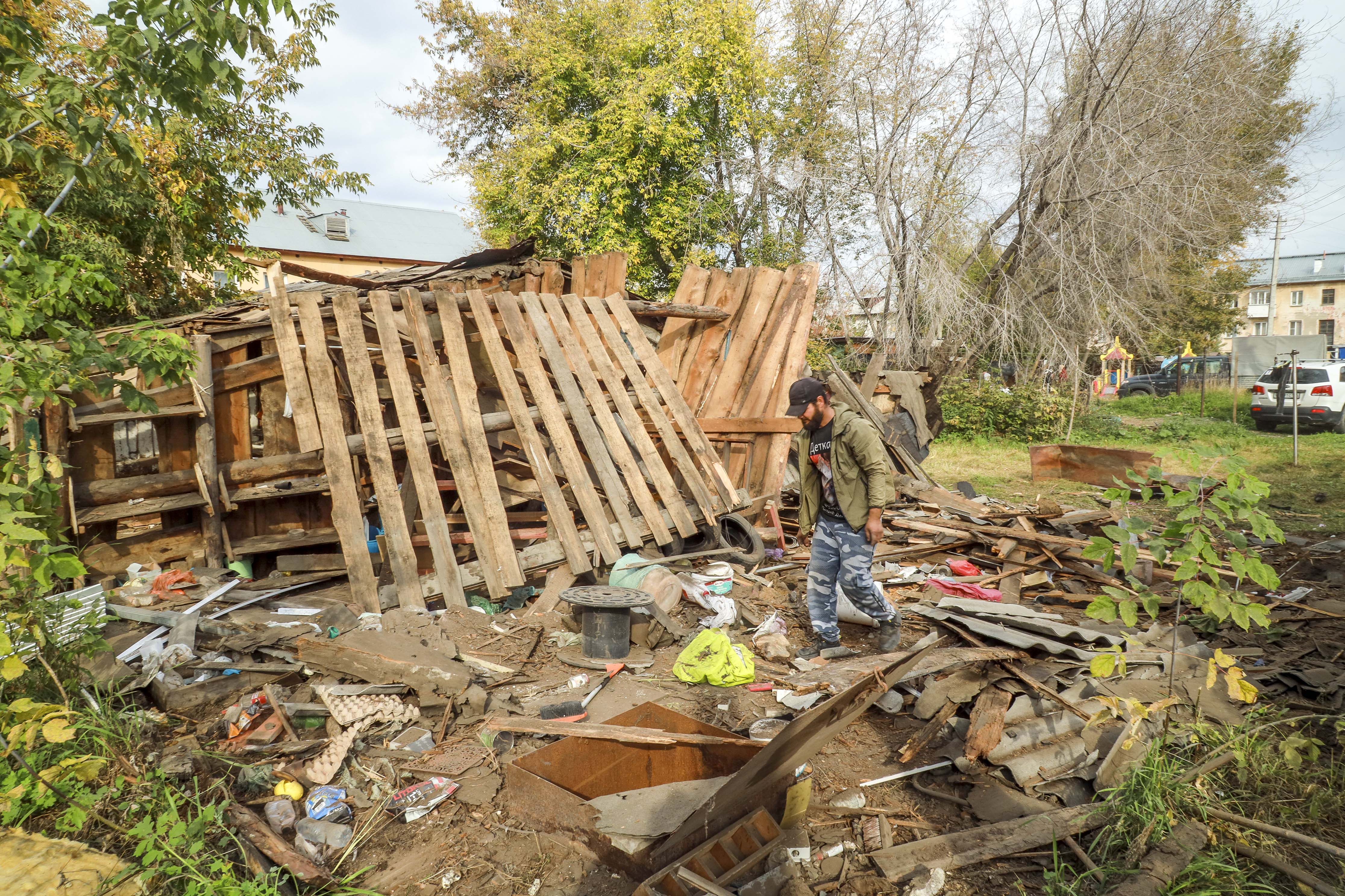 Во дворе дома №60 на улице Бурденко в Кировском районе Новосибирска сносят старые хозяйственные постройки. Их много лет назад незаконно возвели на муниципальной земле местные жители, чтобы хранить там заготовки на зиму и не только.