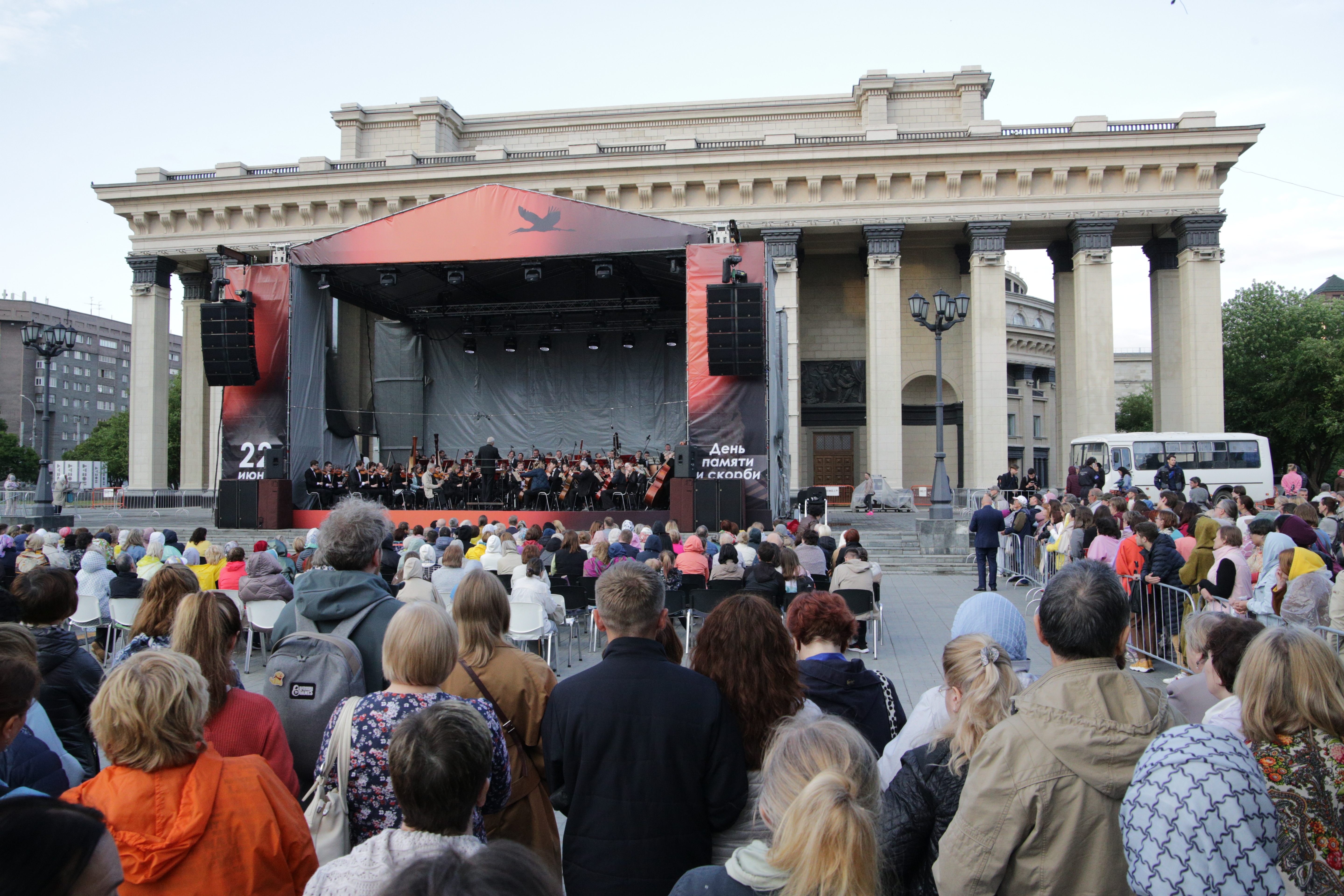 Сотни новосибирцев 22 июня, в День памяти и скорби, собрались под открытым небом в центре города, чтобы вживую услышать Седьмую «Ленинградскую» симфонию Дмитрия Шостаковича. Легендарное произведение исполнил Новосибирский академический симфонический оркестр под управлением Вячеслава Прасолова.