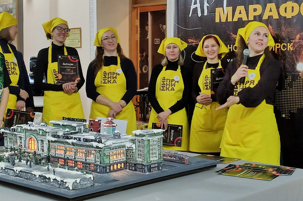 Сибирские кондитеры во второй раз стали участниками международного арт-фестиваля «Мир пряника». Команда во главе с её идейной вдохновительницей Валентиной Заворотнюк заранее испекла заготовки и в прямом эфире собрала из них уменьшенную копию вокзала Новосибирск-Главный с прилегающей площадью.