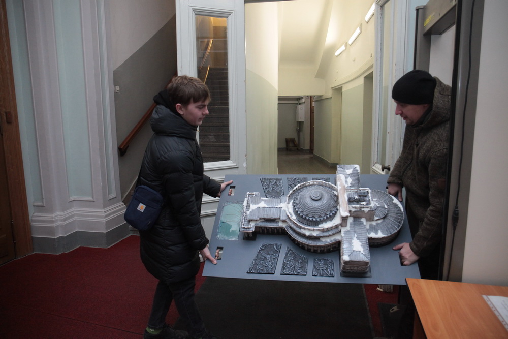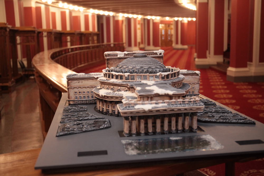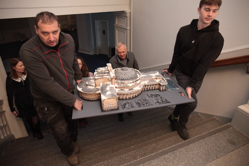 «Съедать макет мы не будем и другим не дадим. Пока он будет стоять на четвёртом этаже театра, в новом выставочном зале, вместе с картинами и партитурами первых спектаклей. Вообще у нас есть задумка — собрать три макета оперного, потому что изначально было три архитектурных проекта. Второй можно будет трогать и даже ощупывать. Он будет из бетона и предназначен специально для слепых», — сообщил собравшимся помощник генерального директора НОВАТа Игорь Решетников.