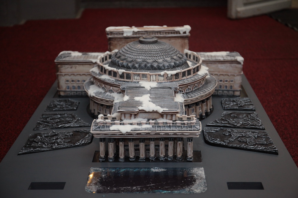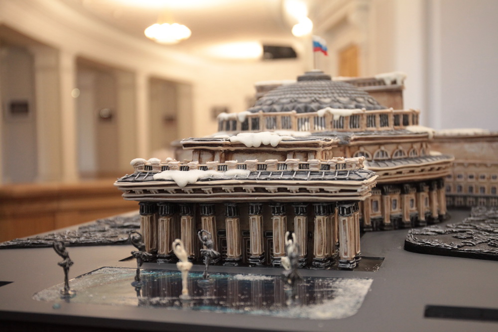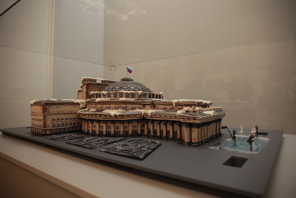 Новосибирскому оперному театру подарили его 25-килограммовую съедобную копию. Сладкий шедевр из пряничного теста, глазури и мастики водрузили на выставочную витрину.