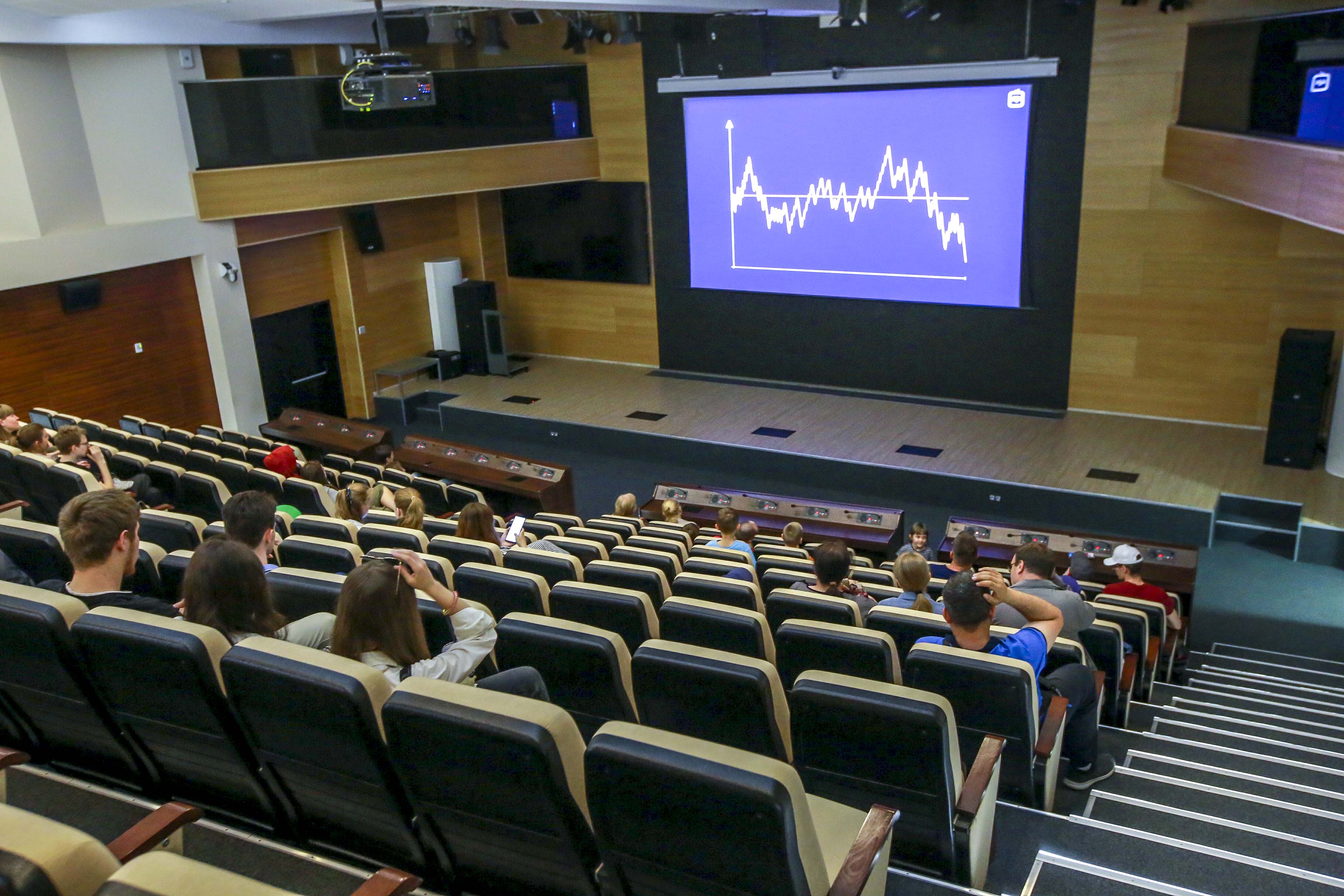 На кинопоказе нон-стоп идут фильмы о науке. В 15:00 состоялась секретная премьера. Самые догадливые нашли подсказку в афише с летучей мышью.