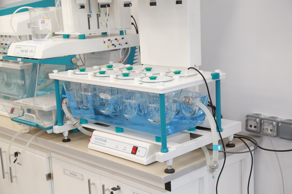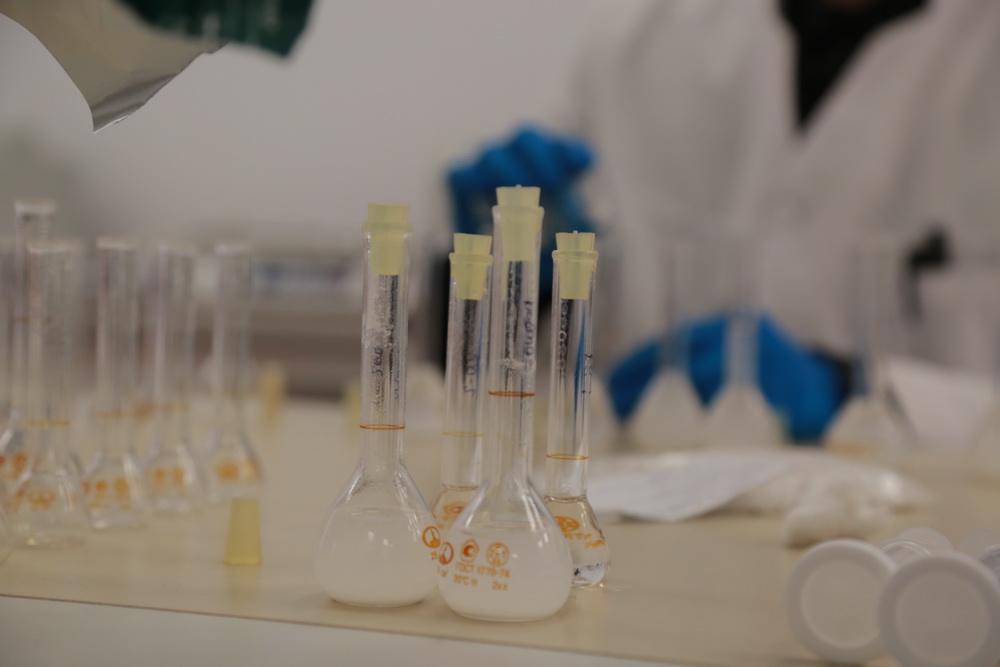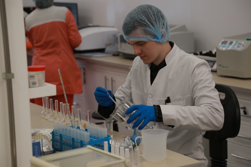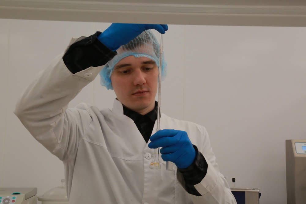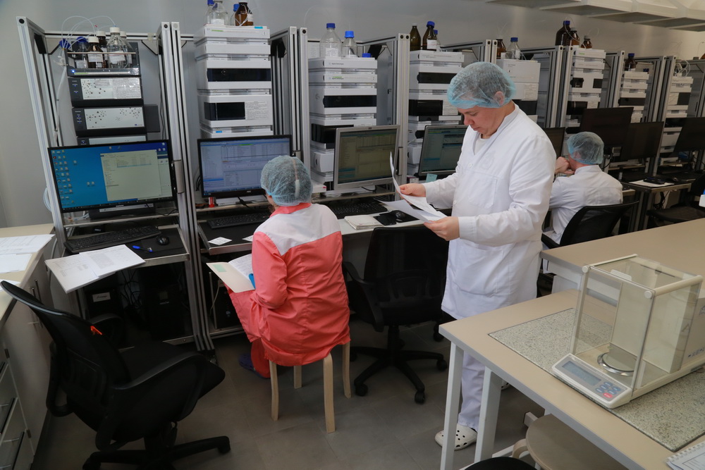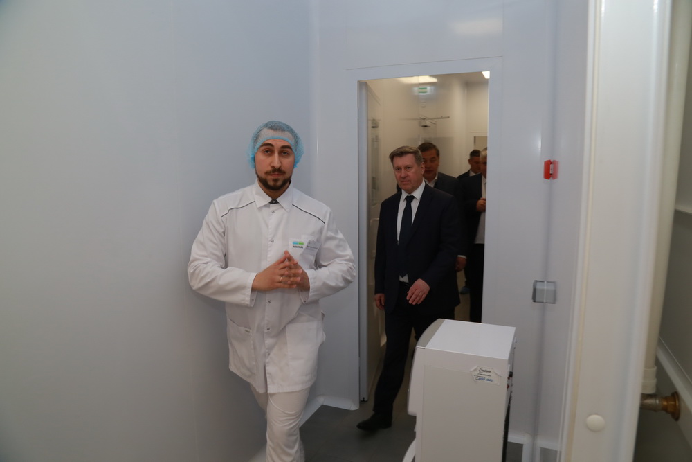 «У нас в этом цеху на верхнем этаже находится такой большой участок фармразработки, где разрабатывают лекарственные препараты, где делается уже подготовка лекарственных препаратов для промышленного применения. Находится самая большая лаборатория, которая работает круглосуточно. И на первом этаже — два больших производственных участка», — рассказал исполнительный директор фармацевтической компании Renewal Владимир Гречкин.
