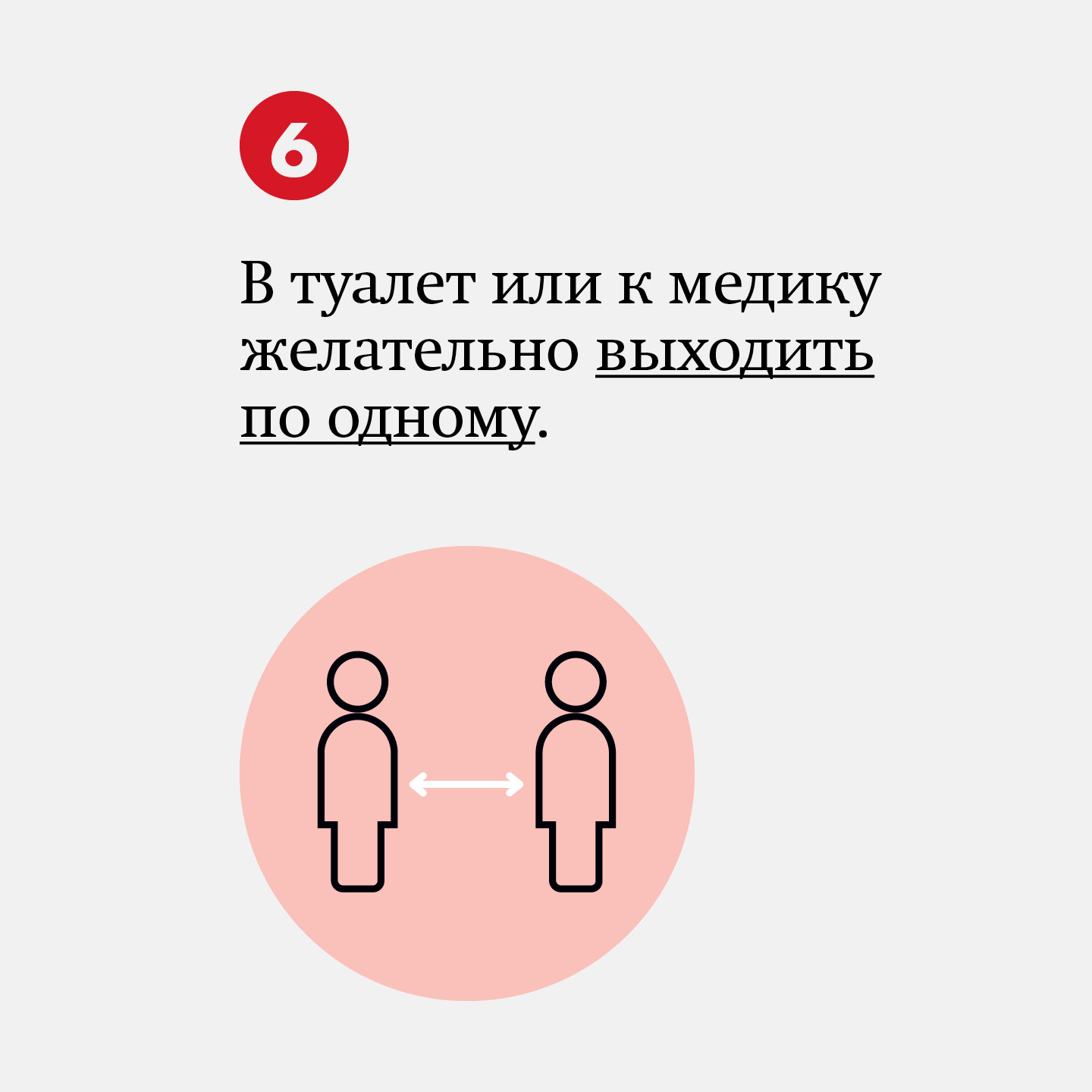 В туалет или медицинский кабинет желательно выходить по одному.