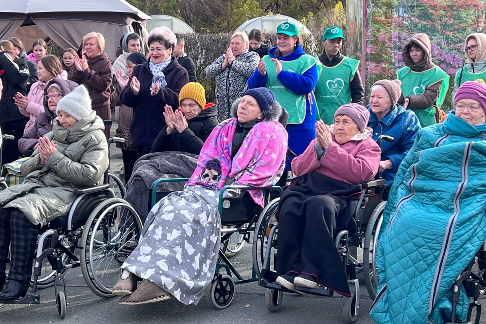 «Я пришёл сюда, чтобы им помочь отвлечься от их обычной бытовой жизни. Потому что, я думаю, как бы за ними ни ухаживали тут, как бы ни развлекали — им всё равно скучновато. Эти люди были брошены, либо у них просто нет родственников, и им досадно от этого, я думаю», — считает юный волонтёр Матвей Митрофанов.