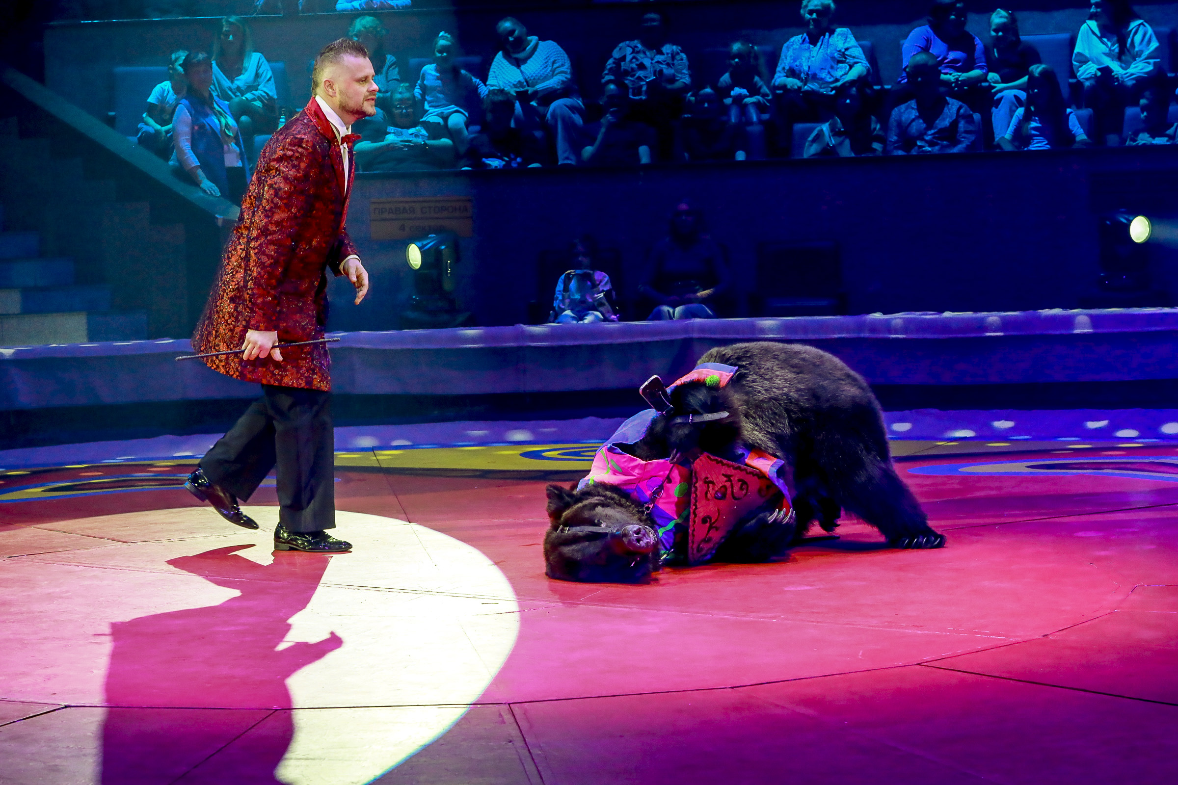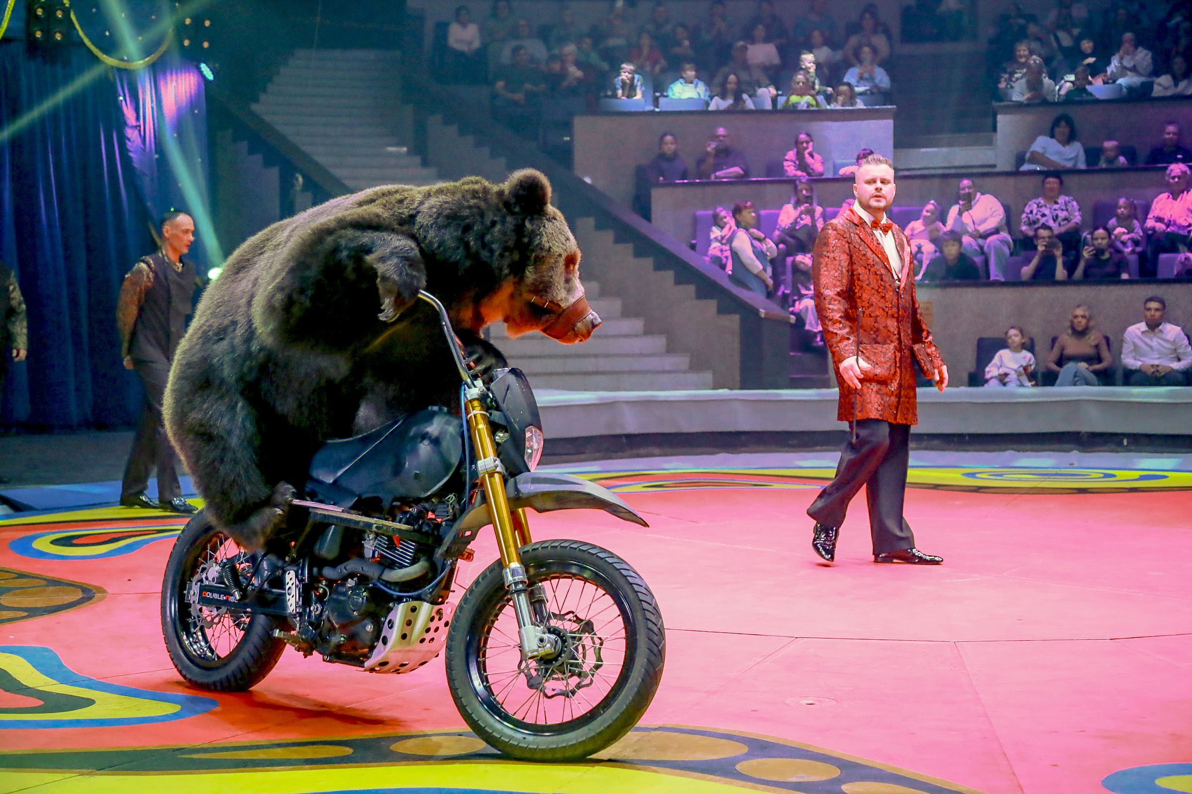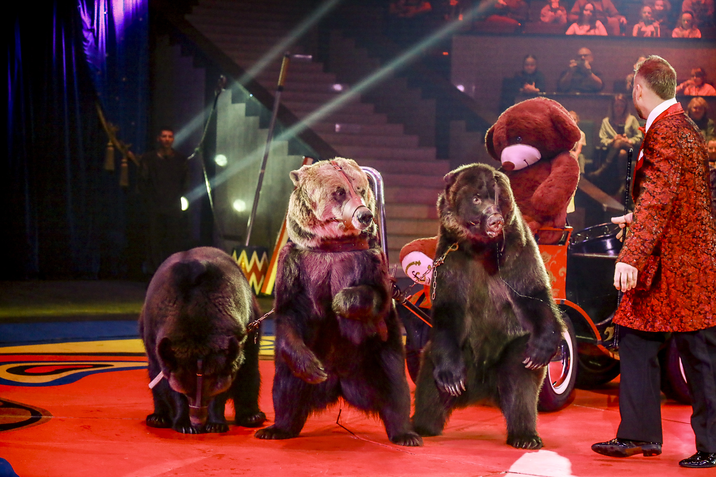 Гвоздь программы — 15 медведей. Они выходят на арену во втором отделении и удивляют сноровкой и ловкостью.