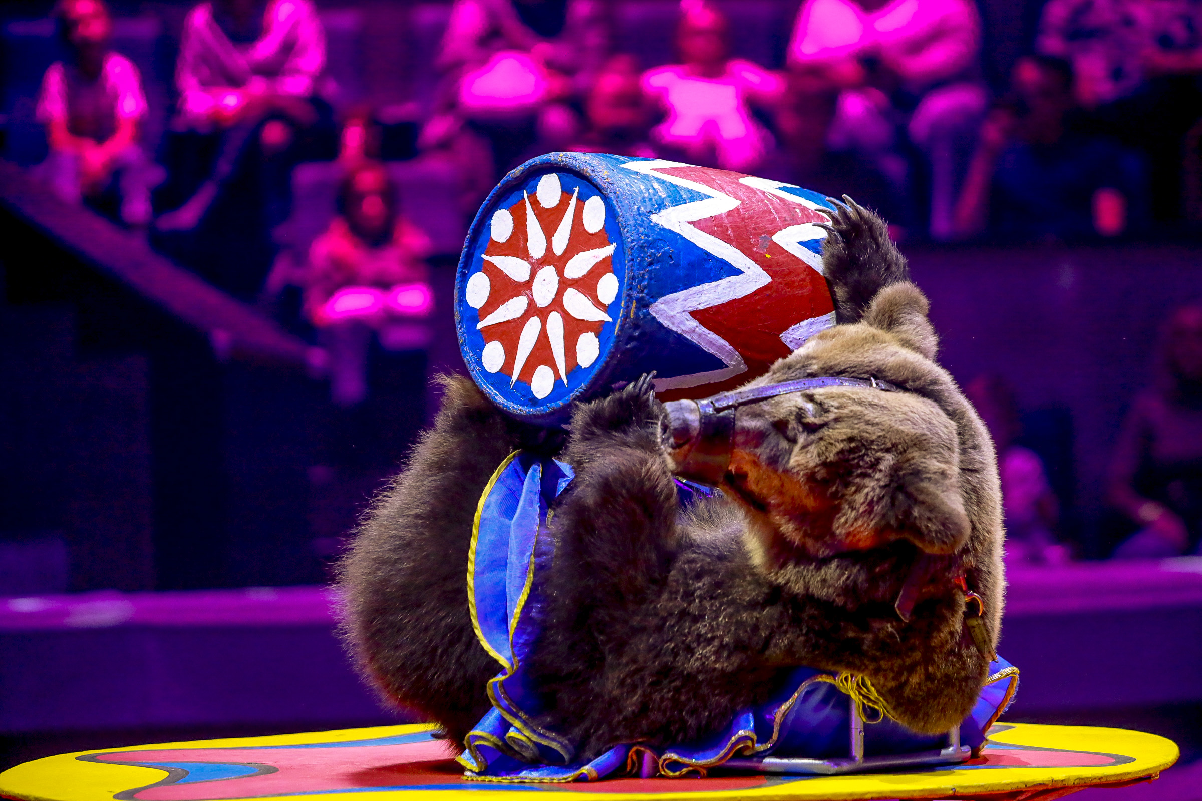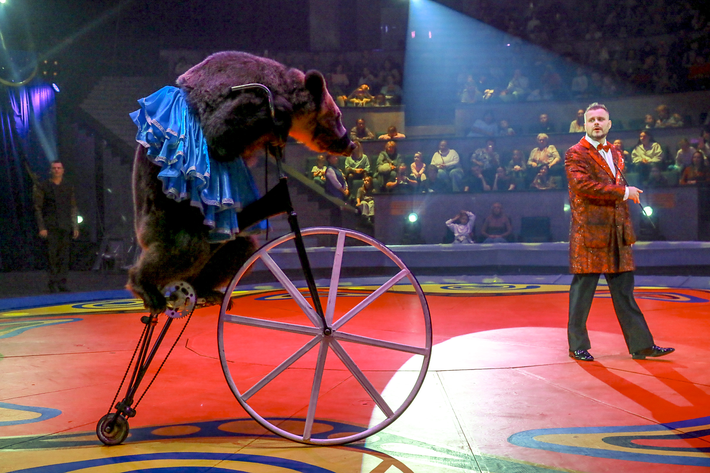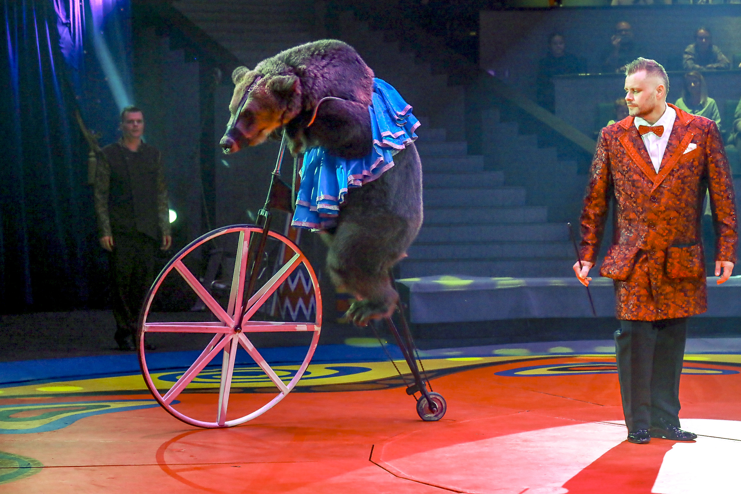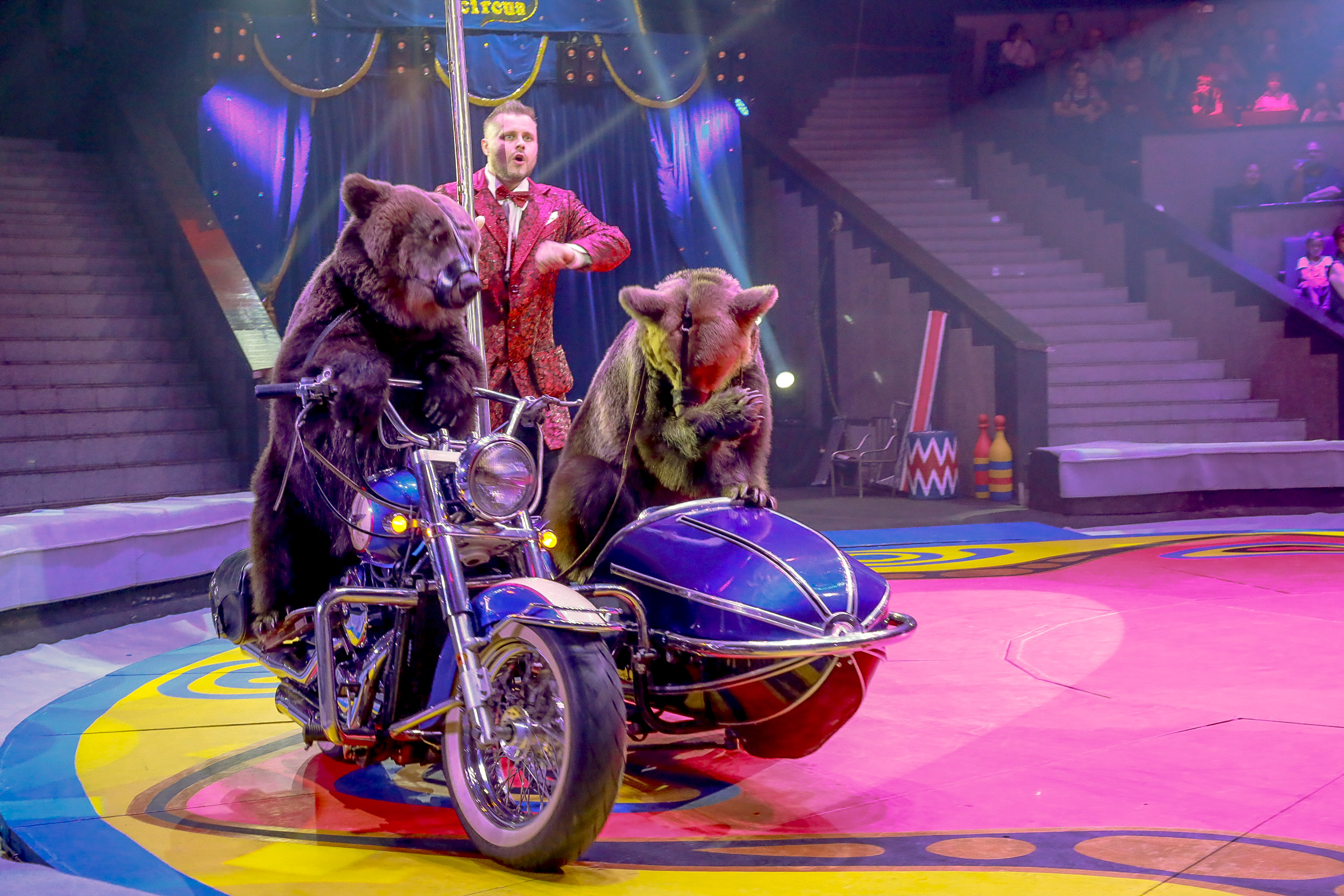 Гвоздь программы — 15 медведей. Они выходят на арену во втором отделении и удивляют сноровкой и ловкостью.