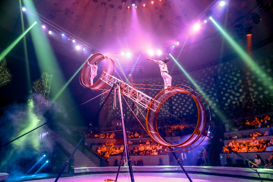 Некоторые из номеров выполняют без страховки. Отважные эквилибристы проходят по «свободной проволоке», воздушные гимнасты демонстрируют акробатические упражнения, невероятным бесстрашием поражает аттракцион «колесо смелости».