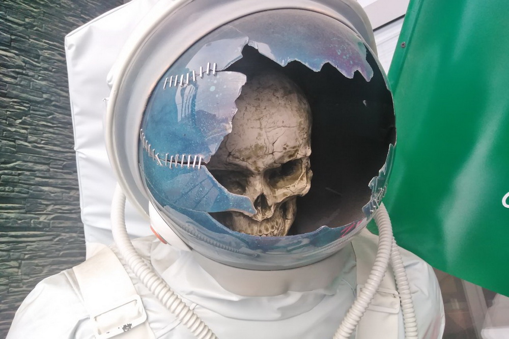 Скелет космонавта с электрогитарой появился в центре Новосибирска