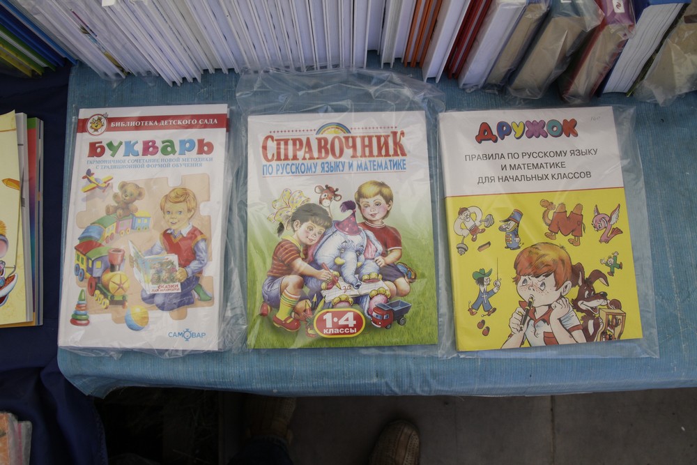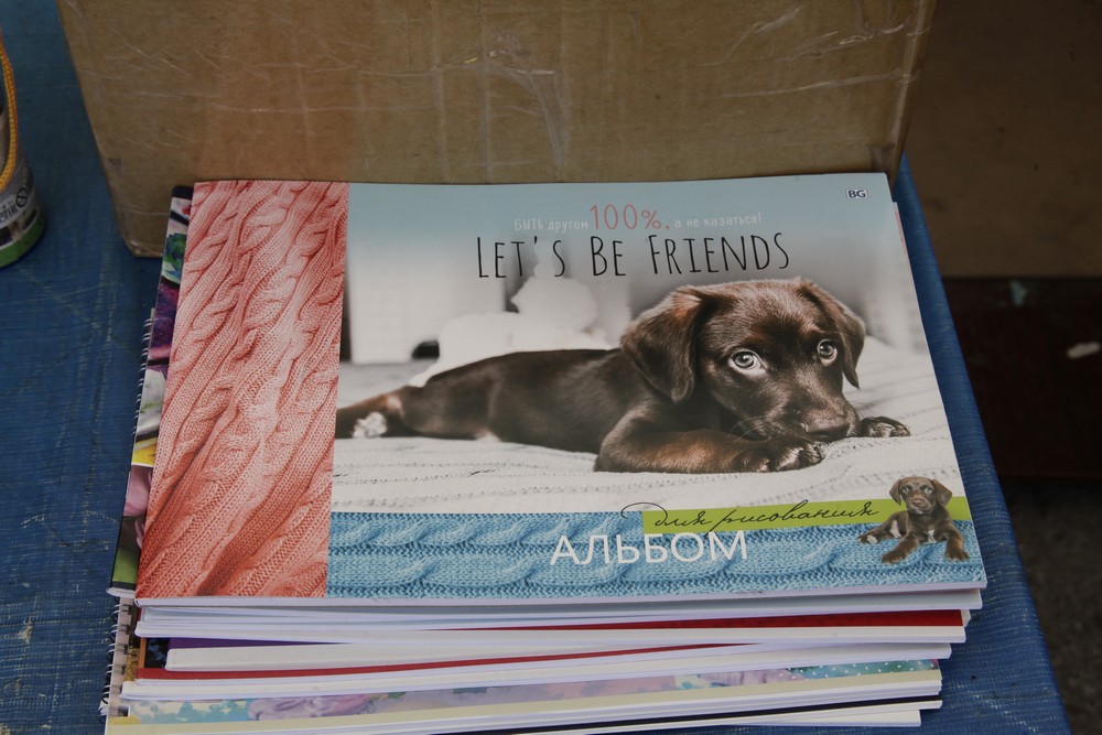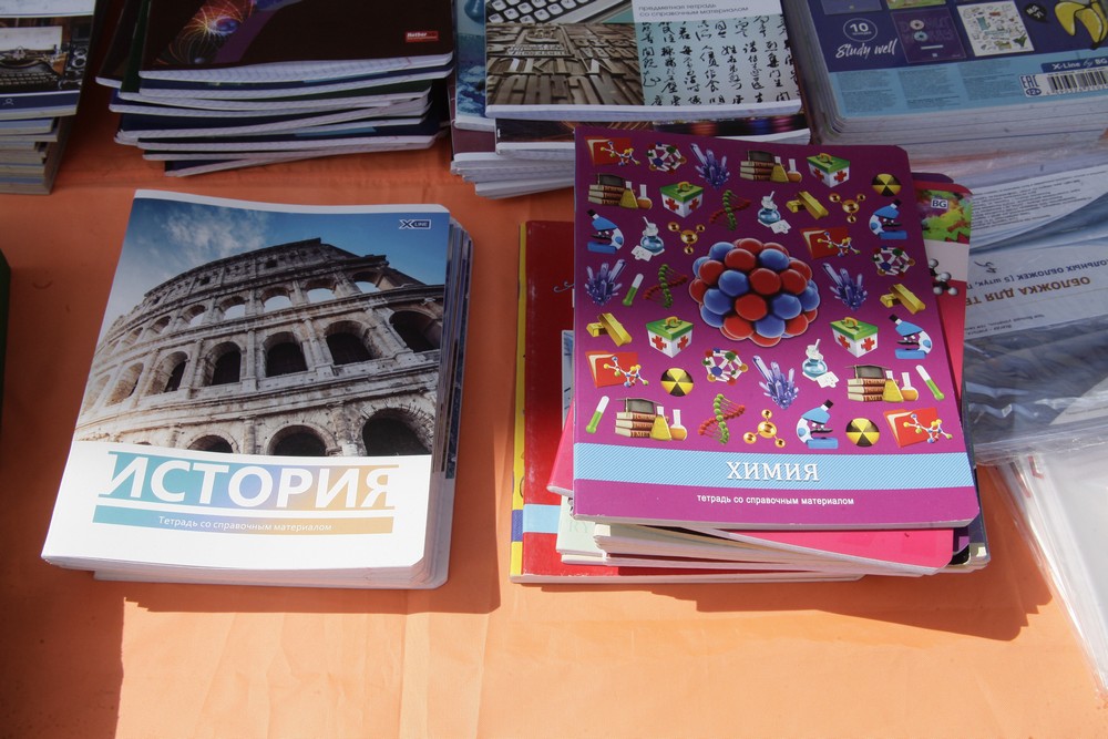 Первые покупатели выбирают тетради и дневники. За главный документ школьника придётся отдать от 40 до 100 рублей. Простые тонкие тетради стоят 7 рублей, общие с цветными обложками — дороже. Выбрать подходящий товар помогают продавцы.