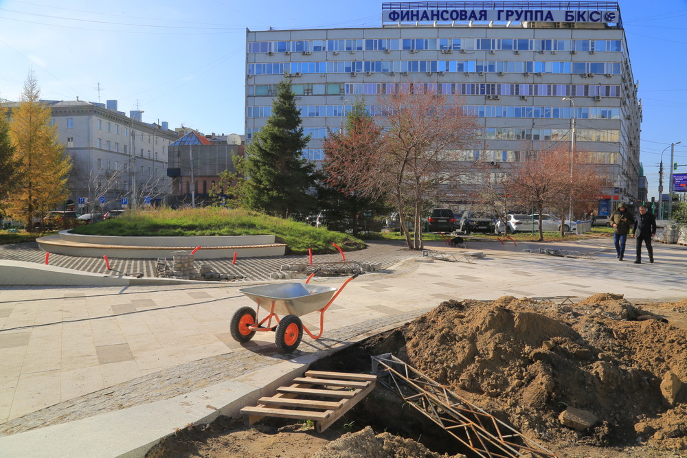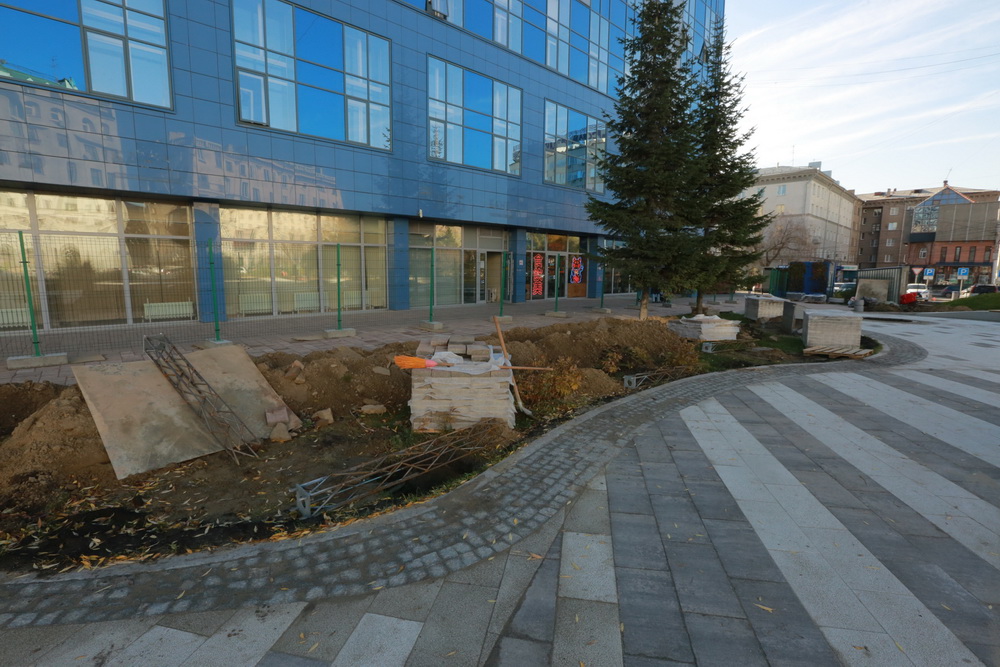 Кроме того, осталось преобразить фонтан: вместо зеркального глобуса установят символ геотега. Этот этап работ запланирован на весну. Однако прогуляться по новым дорожкам можно будет уже в конце 2023 года.