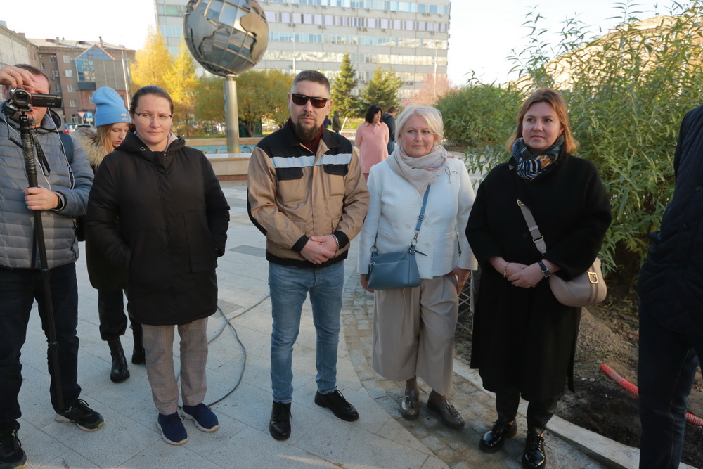 «Здесь очень много интересных художественных, технологических решений. Здесь современная плитка используется, в том числе гранитная — она износостойкая очень. Если взять тротуары, прилегающие к этому скверу, они тоже обустроены», — отметил мэр Анатолий Локоть.