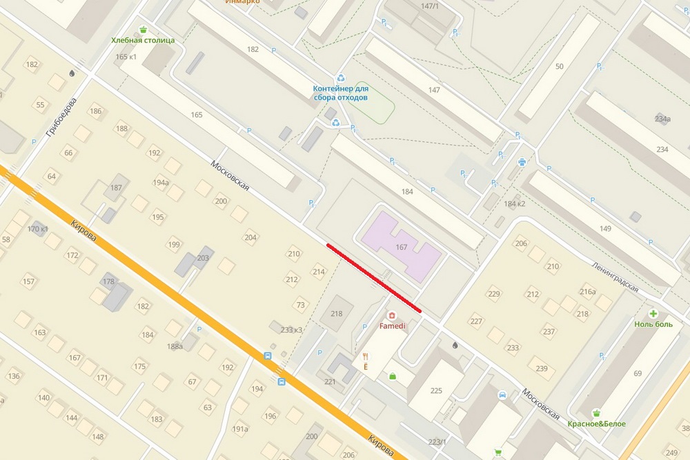 До 11 ноября улица Московская закрыта для транспорта возле здания №167. Дорогу разрыли, чтобы отремонтировать водовод.