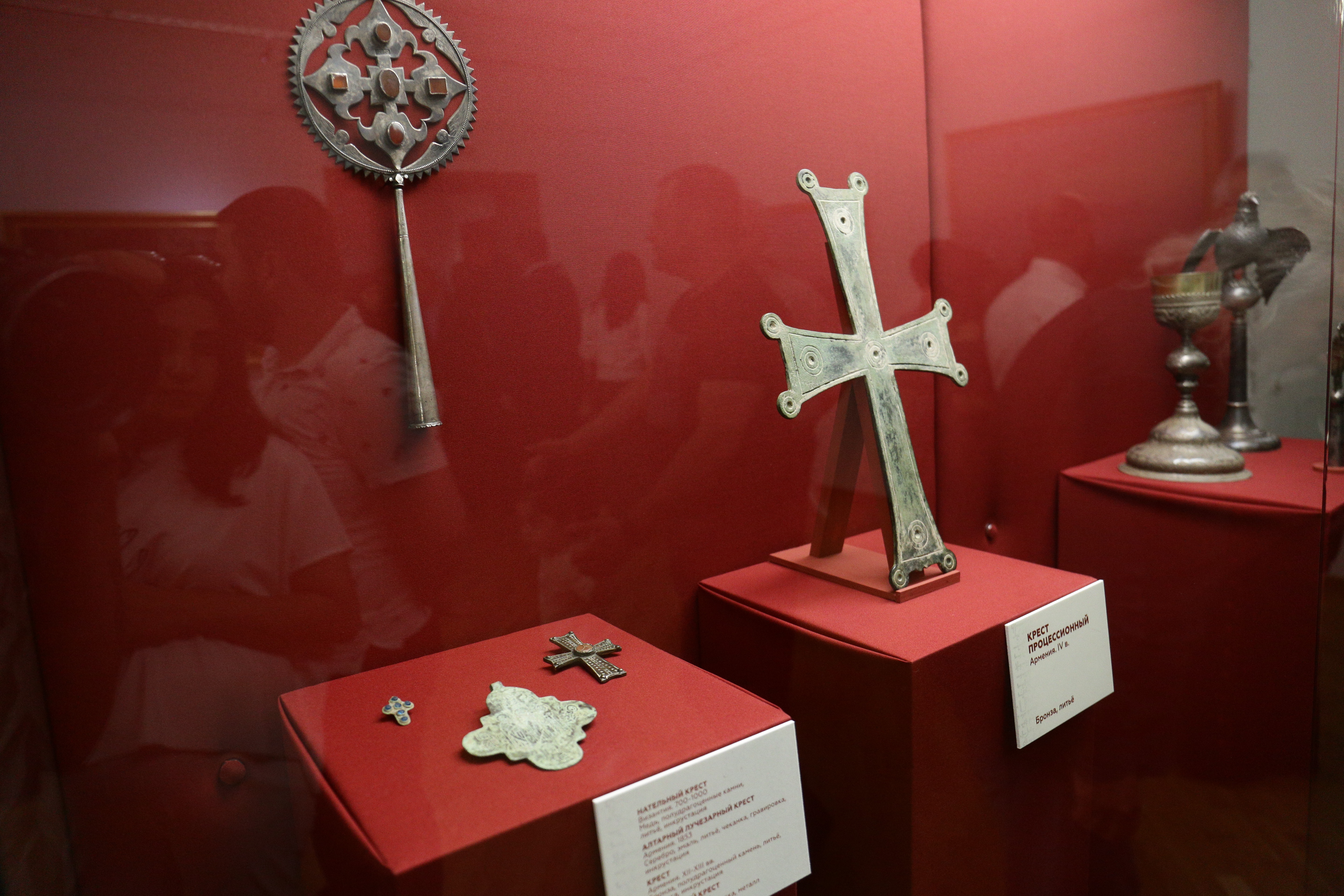 Среди экспонатов выставки — крест с частицей Креста Господня, мощевик с частицей мощей святого Григория Просветителя, мощи святого Власия Себастийского, акварель Ивана Айвазовского, работы Геворка Башинджагяна. Всего здесь собрано более 90 музейных предметов из собрания музея «Тапан».