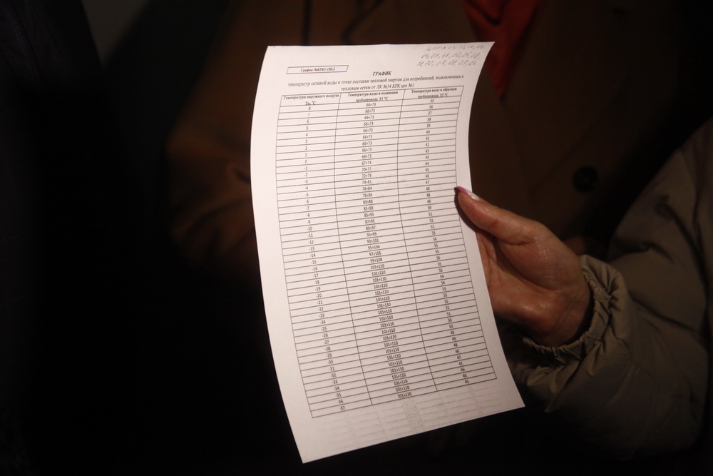 «Произвели замеры параметров на вводе в жилой дом. Параметры на данный момент соответствуют расчётным значениям. У нас есть потребительский график, который у каждого потребителя приложен к договору. На этот график мы ориентируемся. Согласно графику, если смотреть на температуру наружного воздуха, мы выдерживаем параметры теплоносителя на данном доме на сегодняшний день», — прокомментировала представитель Новосибирской теплосетевой компании Оксана Долженко.