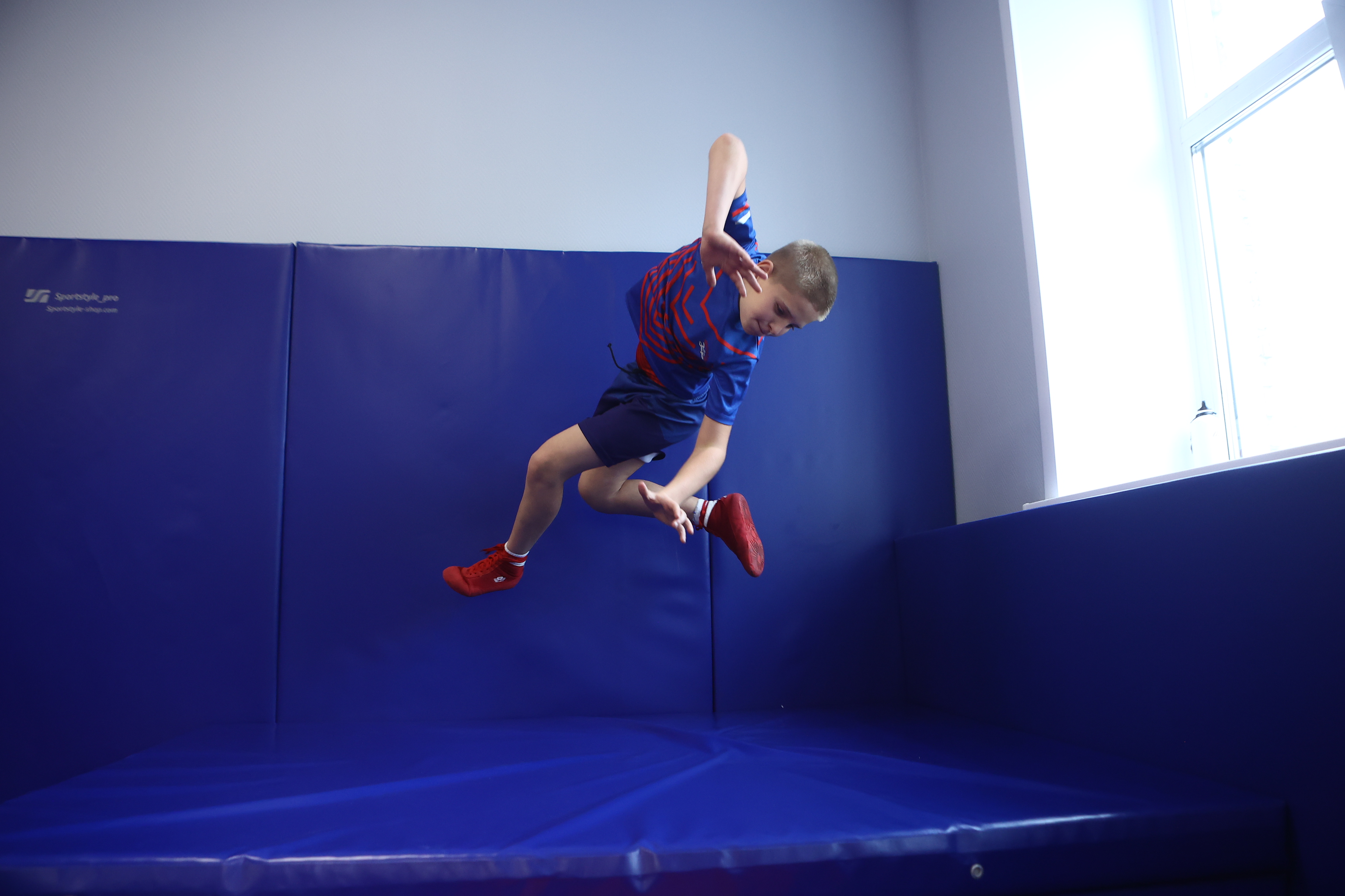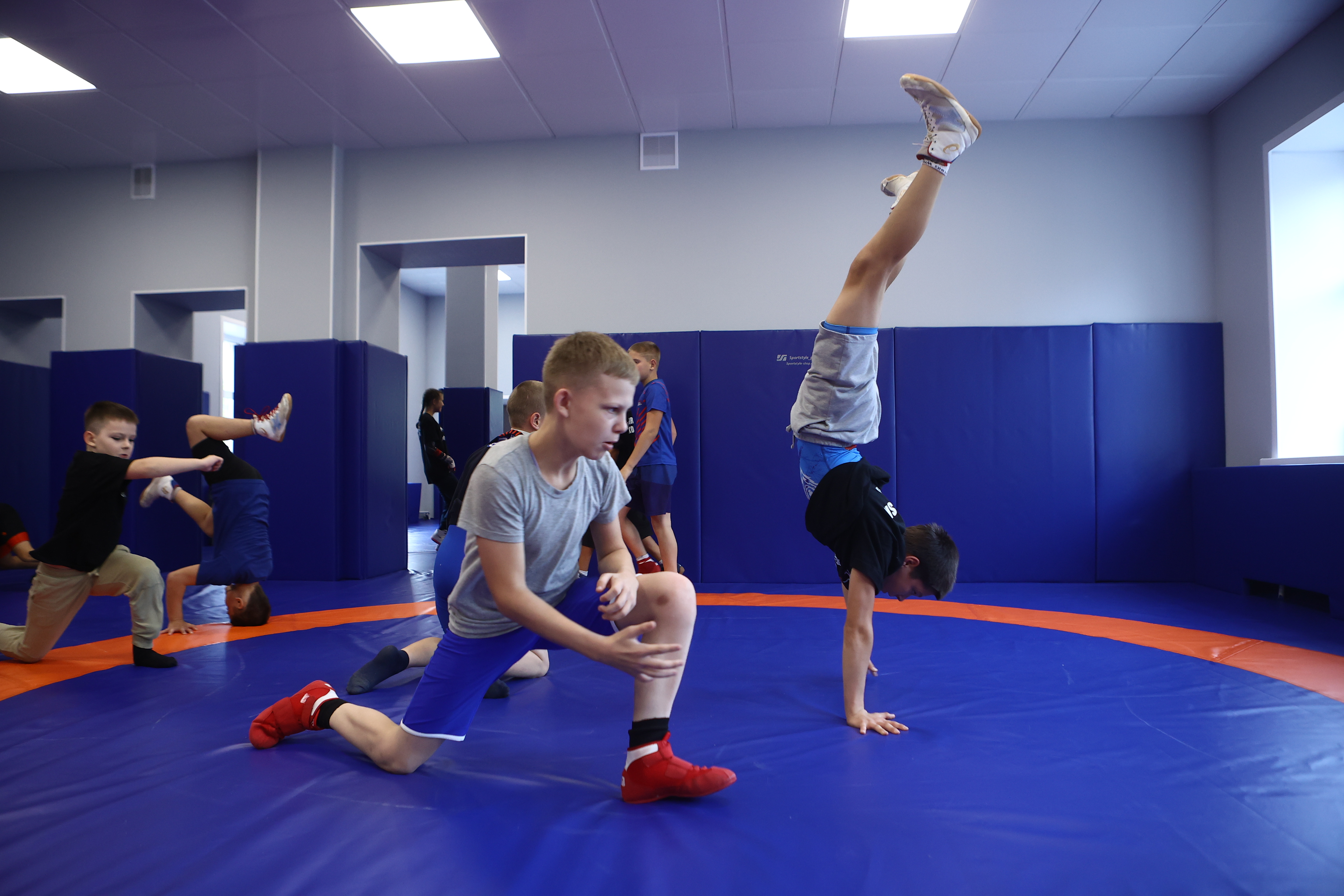 «Здесь ребята занимаются вольной борьбой, были секции тхэквондо, самбо, но основное направление — вольная борьба. Ходят 50–60 детей, в основном мальчики, девочек — 10%. Ремонт шёл примерно полгода, в это время тренировки проводили на другой базе», — объясняет Байер.