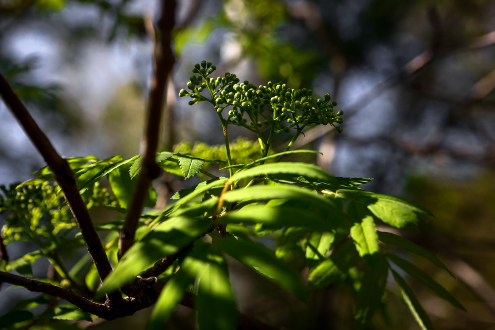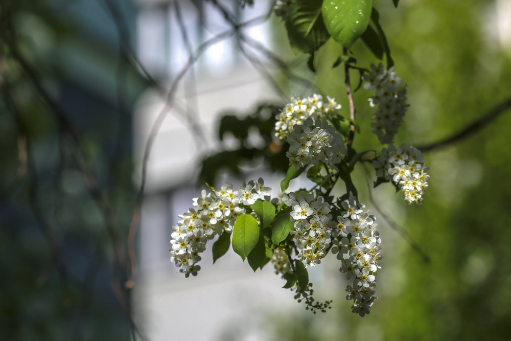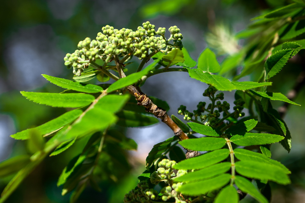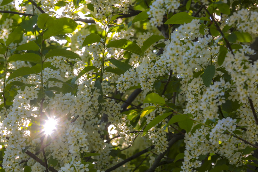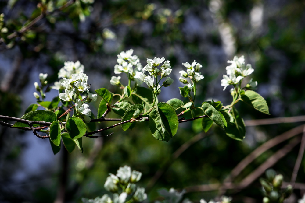 Совсем скоро аллеи яблонь превратятся в красивые белоснежные коридоры. Пока цветочков немного, но они уже источают невероятный аромат. Вовсю благоухает черёмуха. Прохладная погода ей только в радость. Рябина уже тоже потихоньку набирает силу в мохнатых соцветиях.