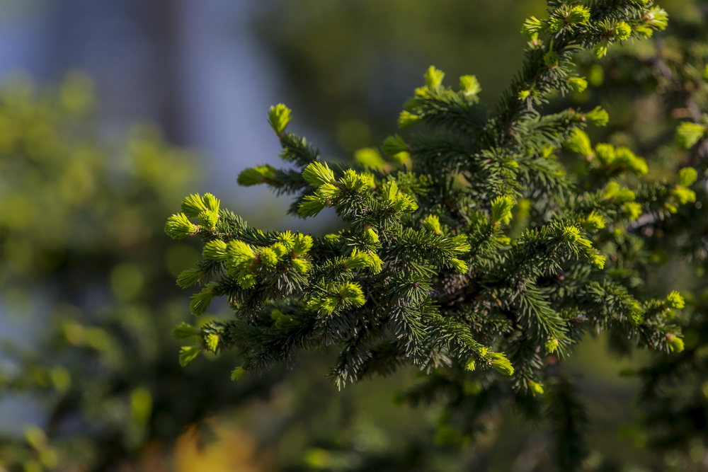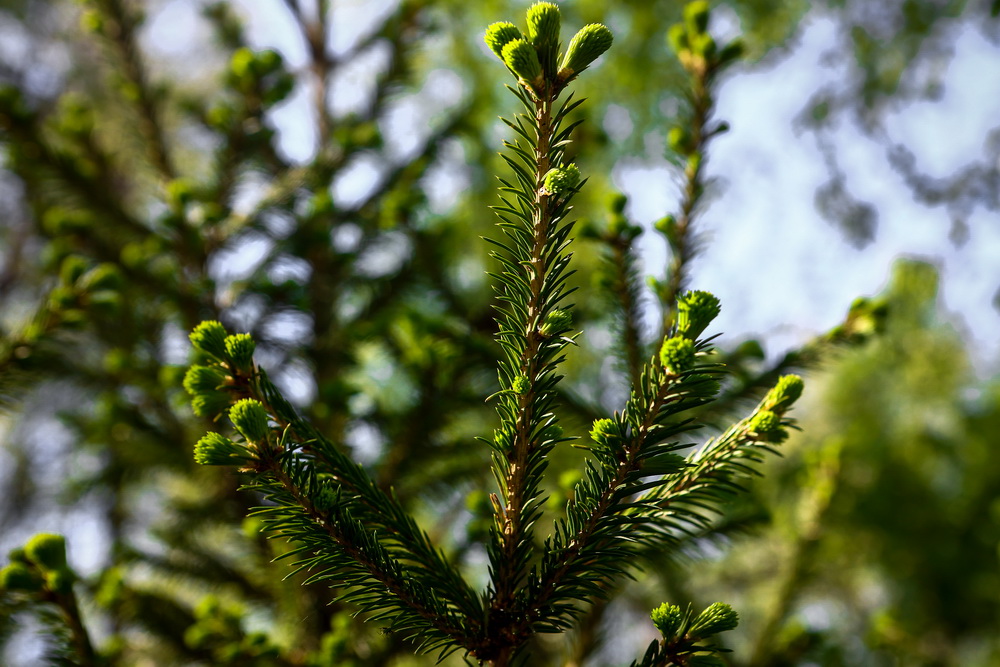 Если углубиться подальше в парки, то там можно найти целые поляны ландышей. Цветочки только-только проклёвываются. Зато как раз сейчас можно сделать любимый всеми фотографами кадр — с капельками росы в листьях.