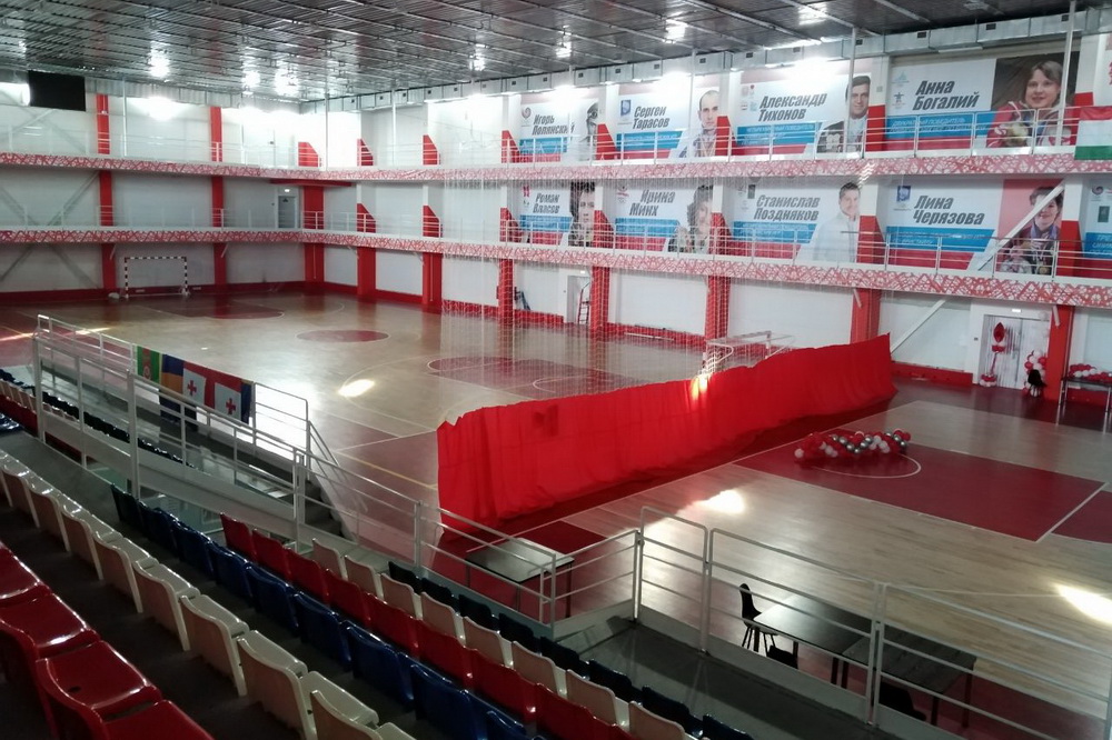 Комплекс включает не только арену площадью 2000 кв. метров с раздевалками для спортсменов, но и трёхэтажную гостиницу на 30 номеров (двух- и четырёхместных). Тут же предусмотрели буфет и просторную столовую.