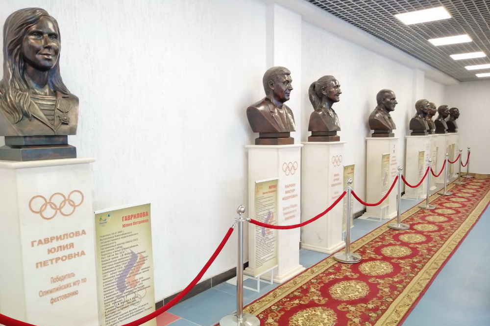 На первом этаже в лобби комплекса спортсменов будет встречать настоящая Аллея Славы. Здесь на мраморных пьедесталах разместили бюсты известных новосибирских спортсменов, олимпийских чемпионов.