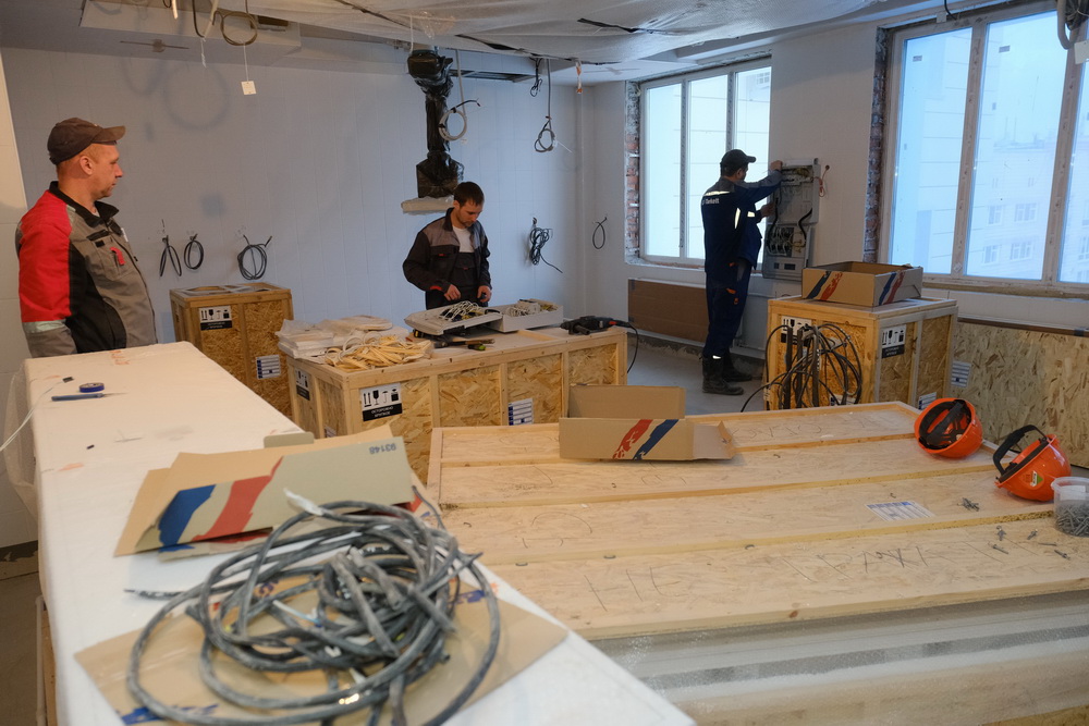 По его информации, к началу этой недели коробка здания была готова на 100%, кровля и окна — на 95%, фасад — на 90%, электрика — на 80%, лифты — на 95%, наружные сети теплоснабжения, водоснабжения и канализации — на 90%, электроснабжения — на 85%.