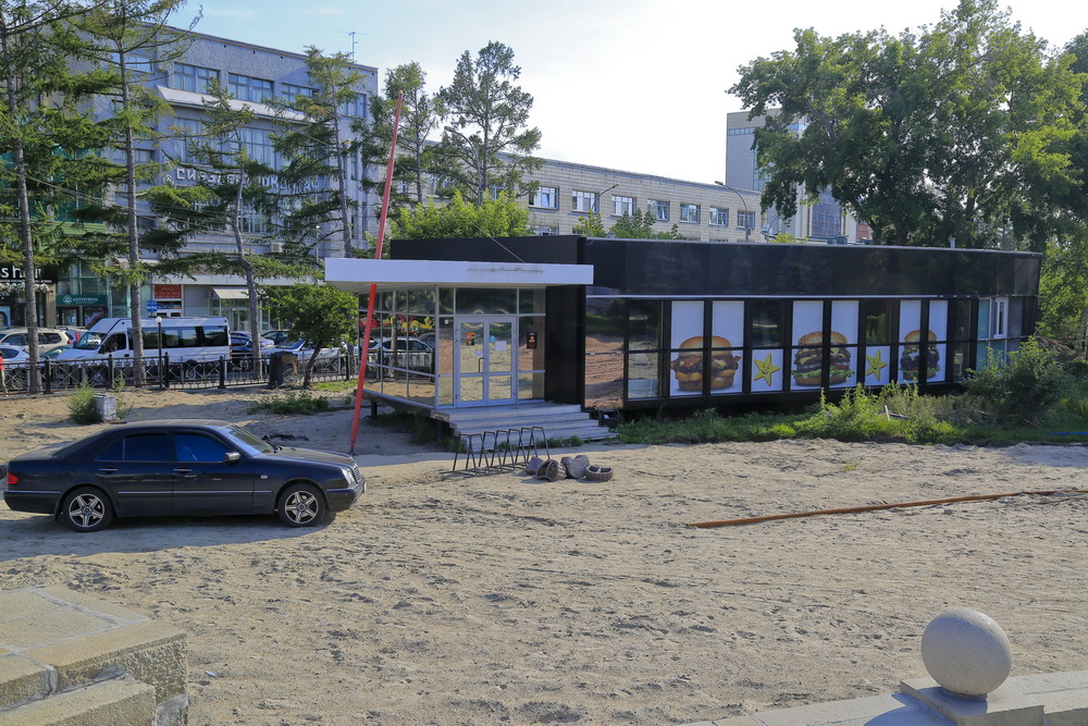В Первомайском сквере начали сносить павильон «Карлс Джуниор». В ближайшие дни истекал срок, за который владелец «стекляшки» должен был её демонтировать.