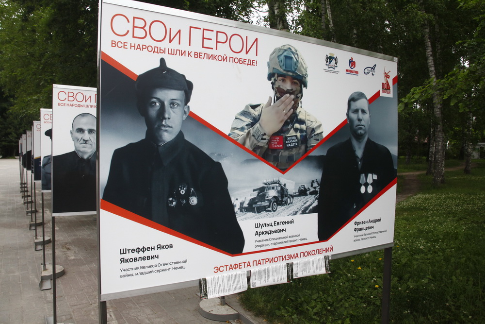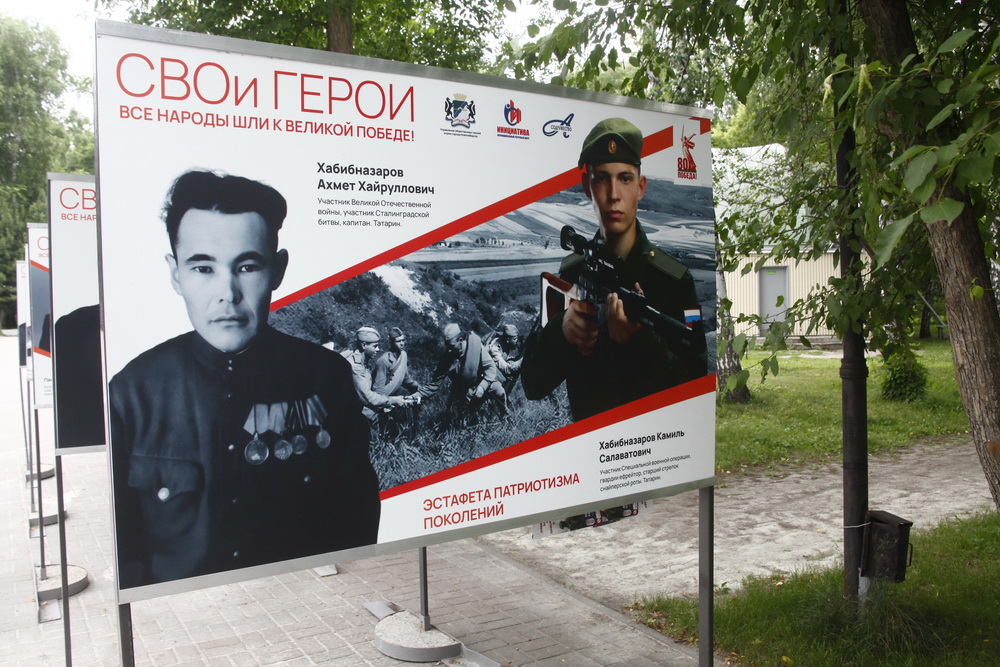 На территории парка «Берёзовая роща» заработала выставка «СВОи герои. Все народы шли к Великой Победе!». Проект символизирует переход эстафеты патриотизма от участников войны 1941–1945 годов к участникам спецоперации.