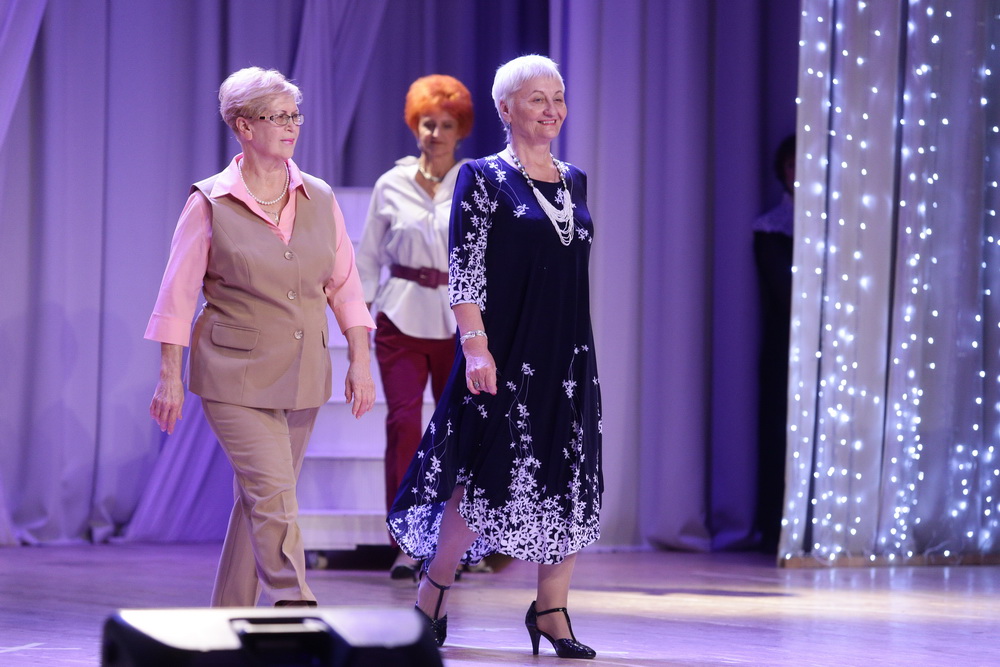 Тех, кто интересуется модой и красотой, пригласили в студию стиля «Элегантный возраст». В неё набирают уже четвёртый поток участников, причём ждут не только женщин, но и мужчин. Выпускники студии показали мастерство дефиле на сцене.