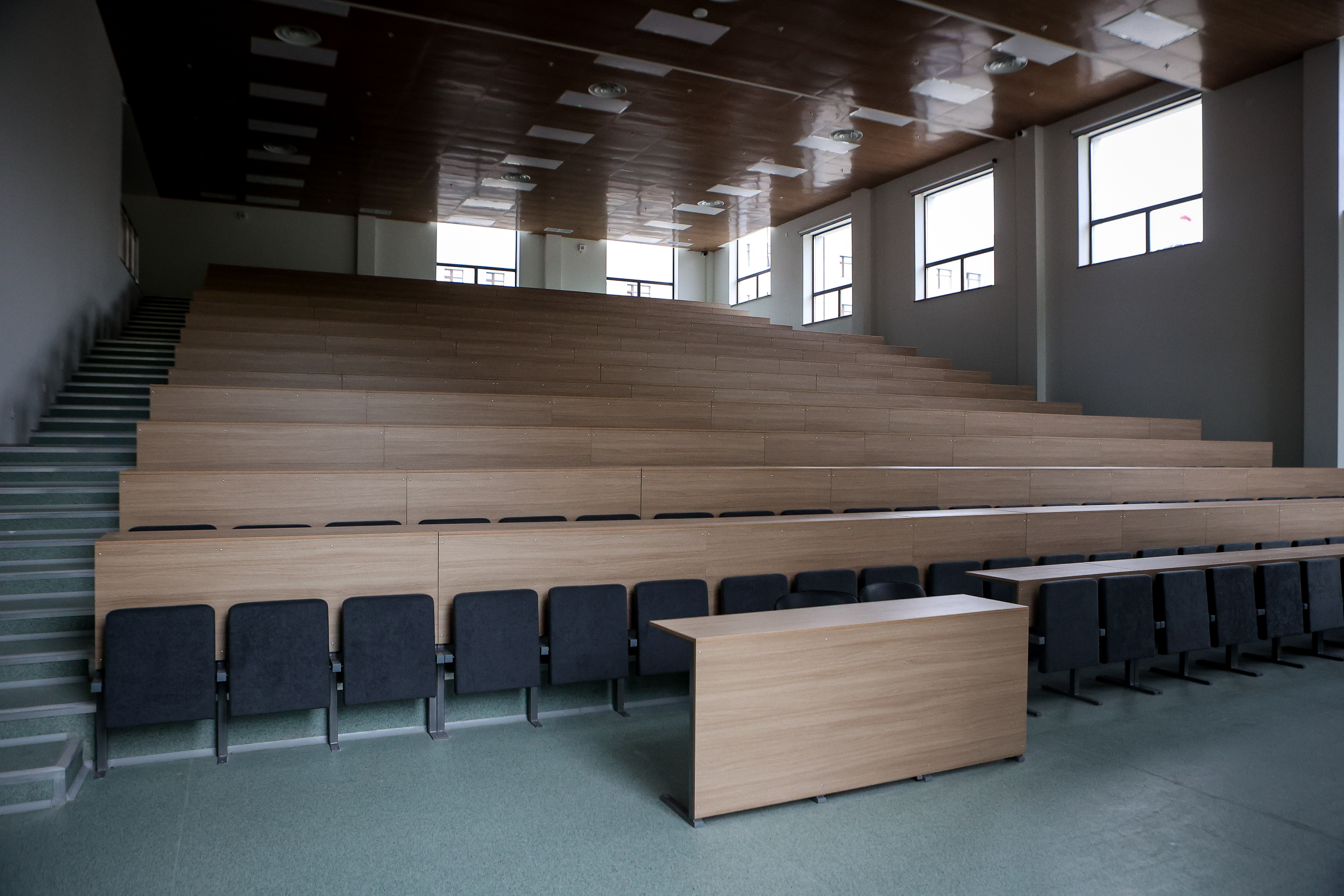 В новом здании расположены четыре поточных аудитории: самая большая рассчитана на 400 студентов.