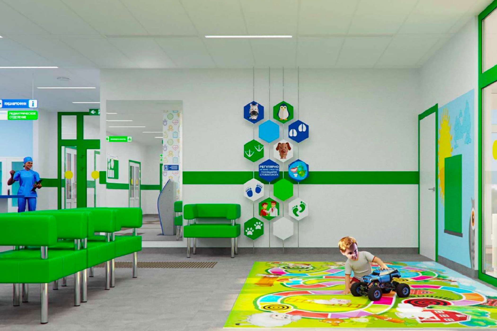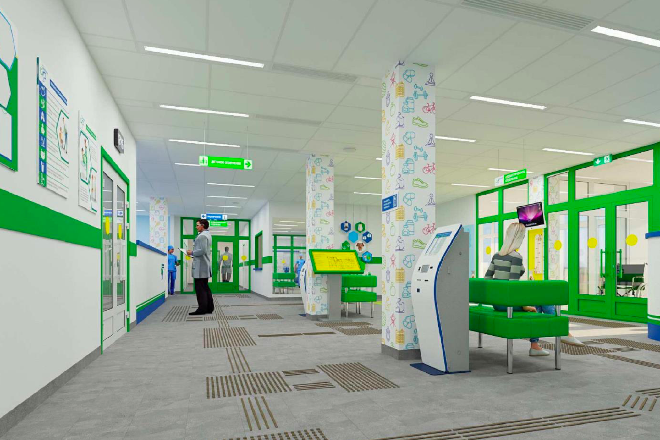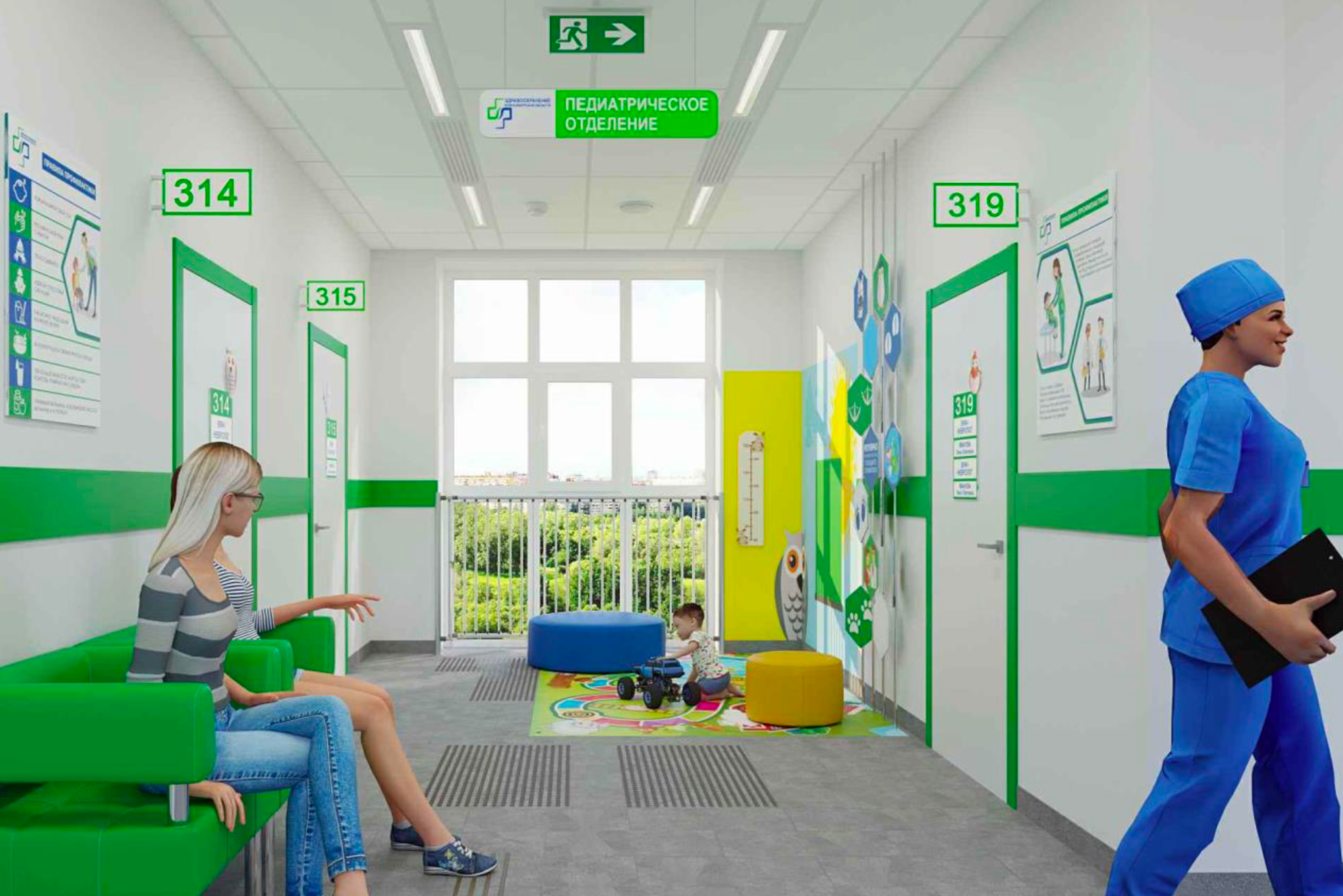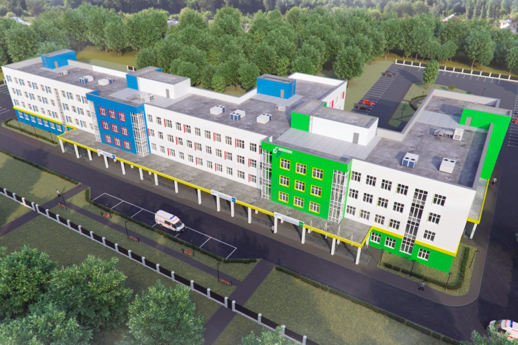 Поликлинику сделают удобной для маломобильных пациентов: в ней предусмотрели специальные санитарные комнаты, лифты, пандусы и систему навигации для людей с ограниченными возможностями. На территории будет парковка, рассчитанная ориентировочно на 90 машин.