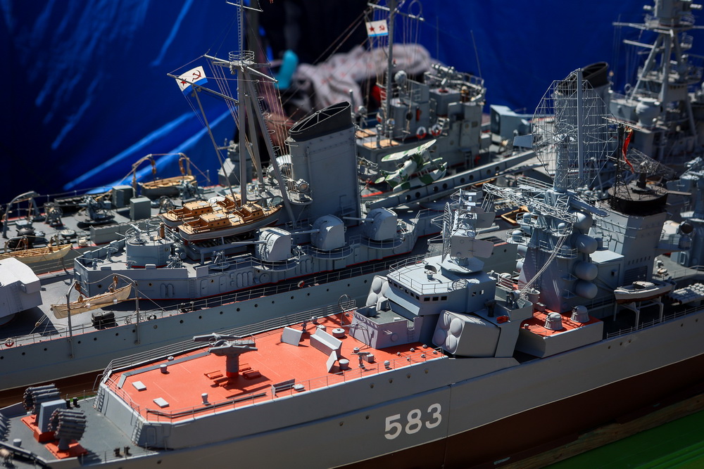 «При изготовлении модели выбирается прототип, который ты копируешь, изучается история этого корабля. Берётся за основу промышленный набор корабля, и делается из него радиоуправляемая модель. Самая трудоёмкая работа — это леерные стойки. Специально изготавливались стойки высотой четыре миллиметра. В каждой стойке —по три отверстия диаметром ноль целых пятнадцать сотых миллиметра. На установку леерных ограждений у меня ушло четыре месяца», — рассказал председатель правления федерации судомодельного спорта Камчатского края Дмитрий Дмитриев.
