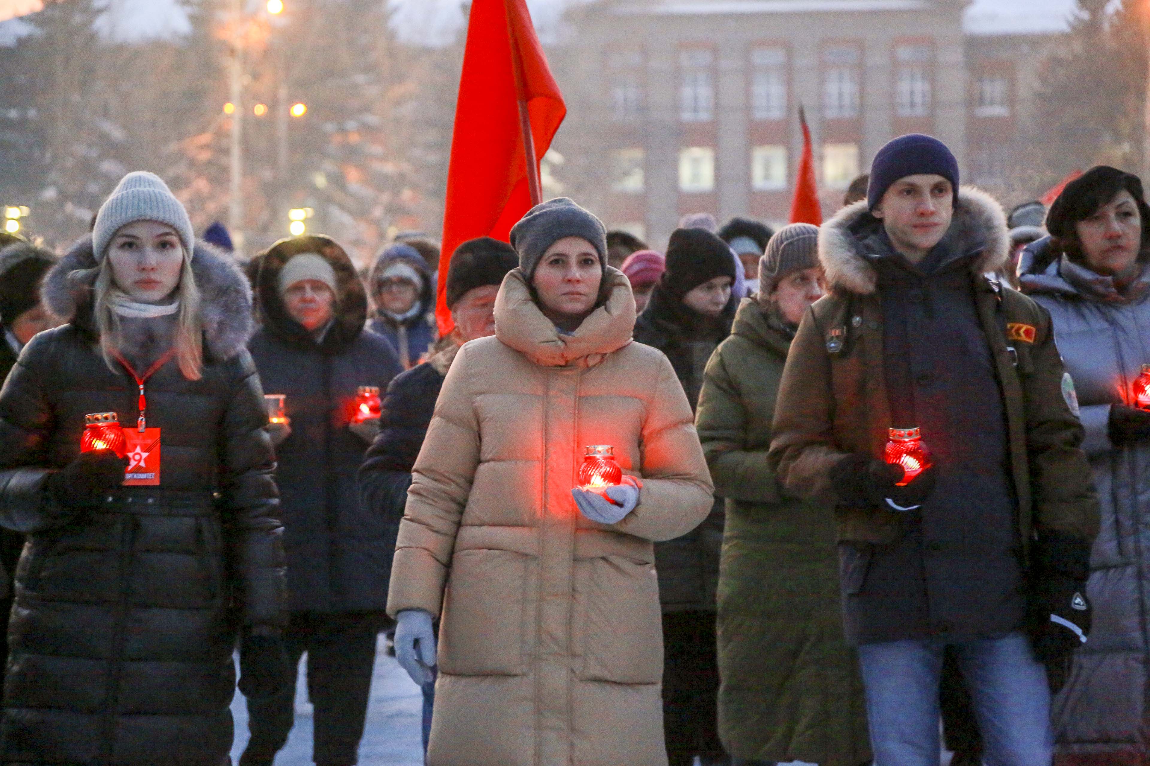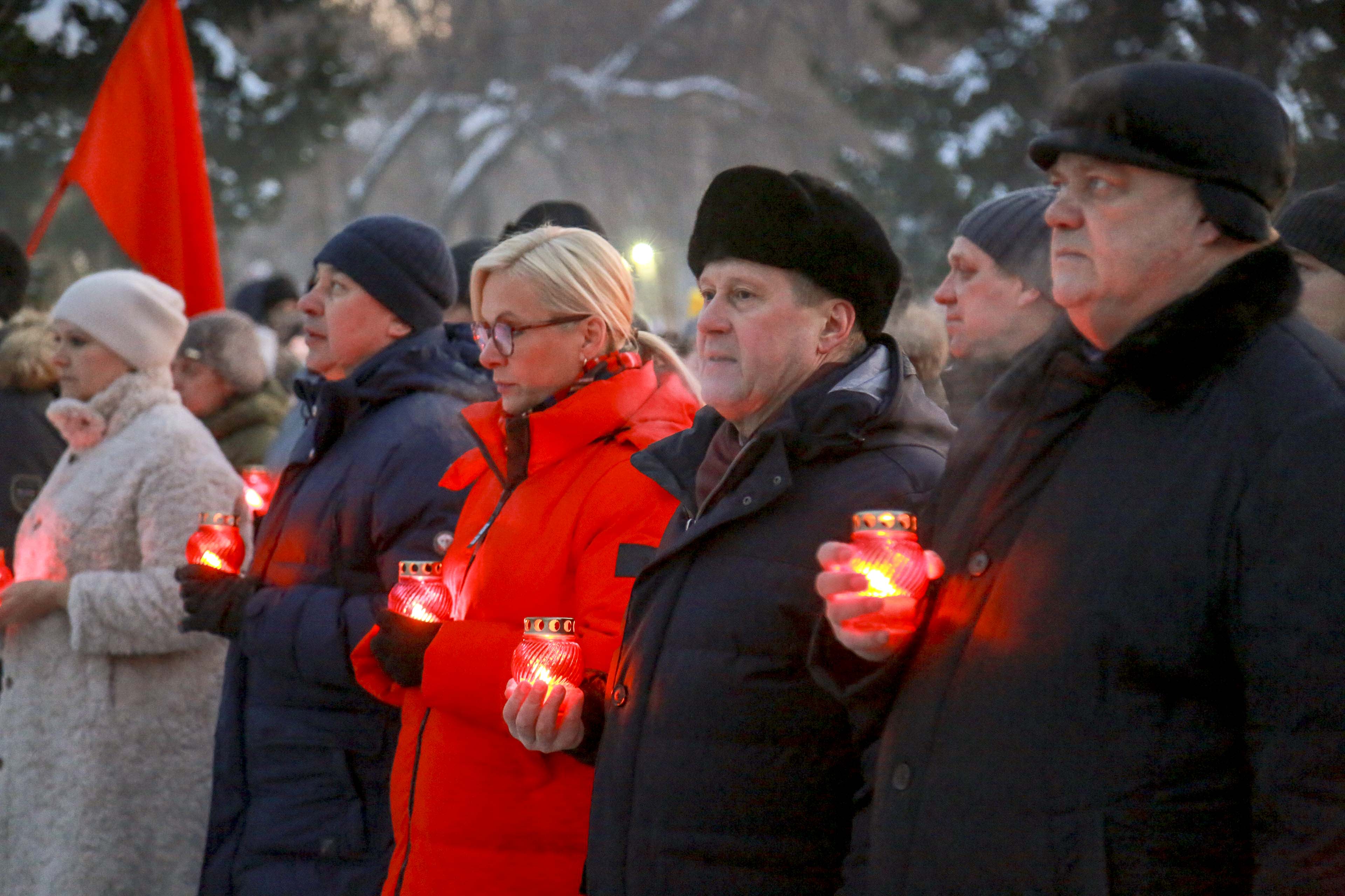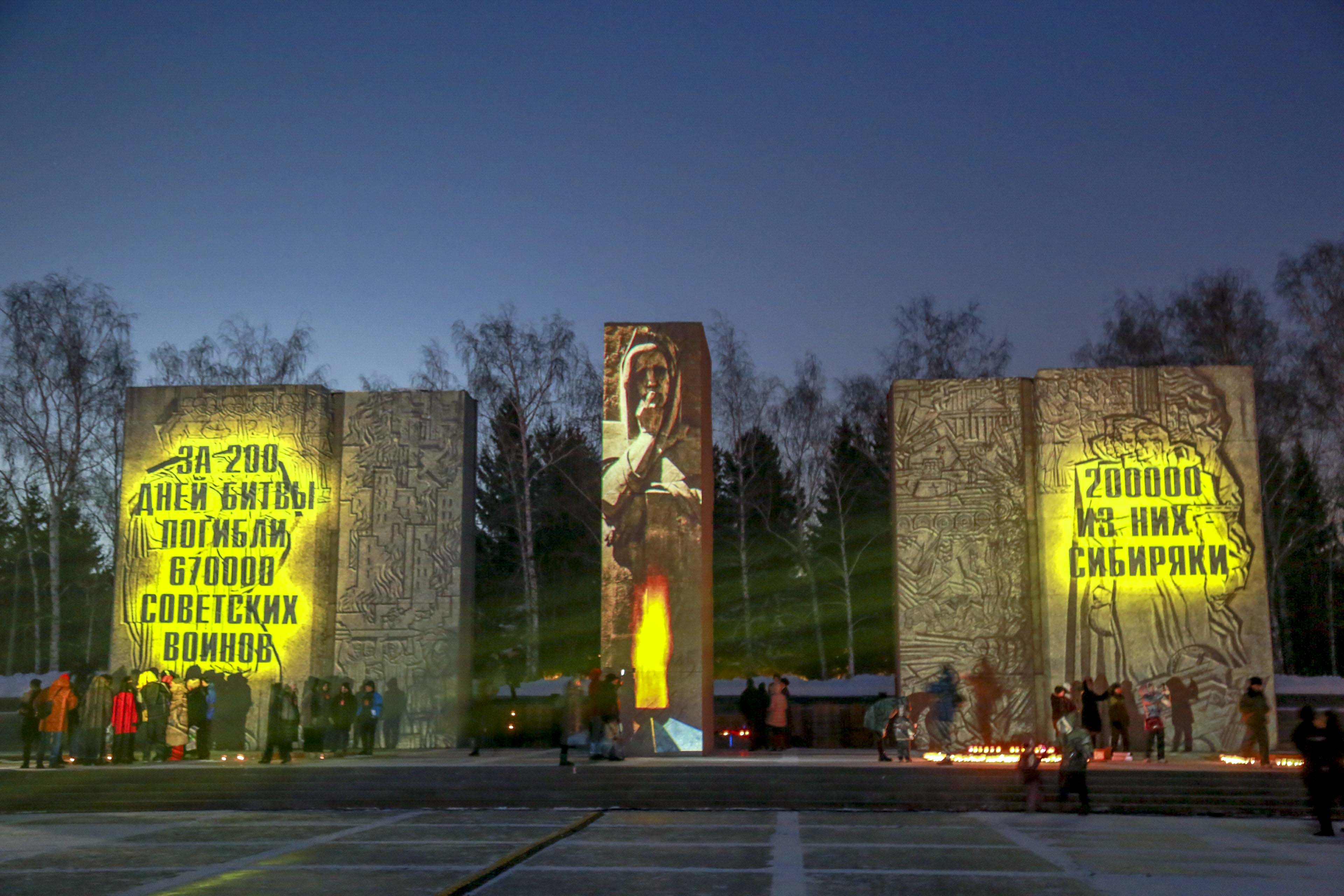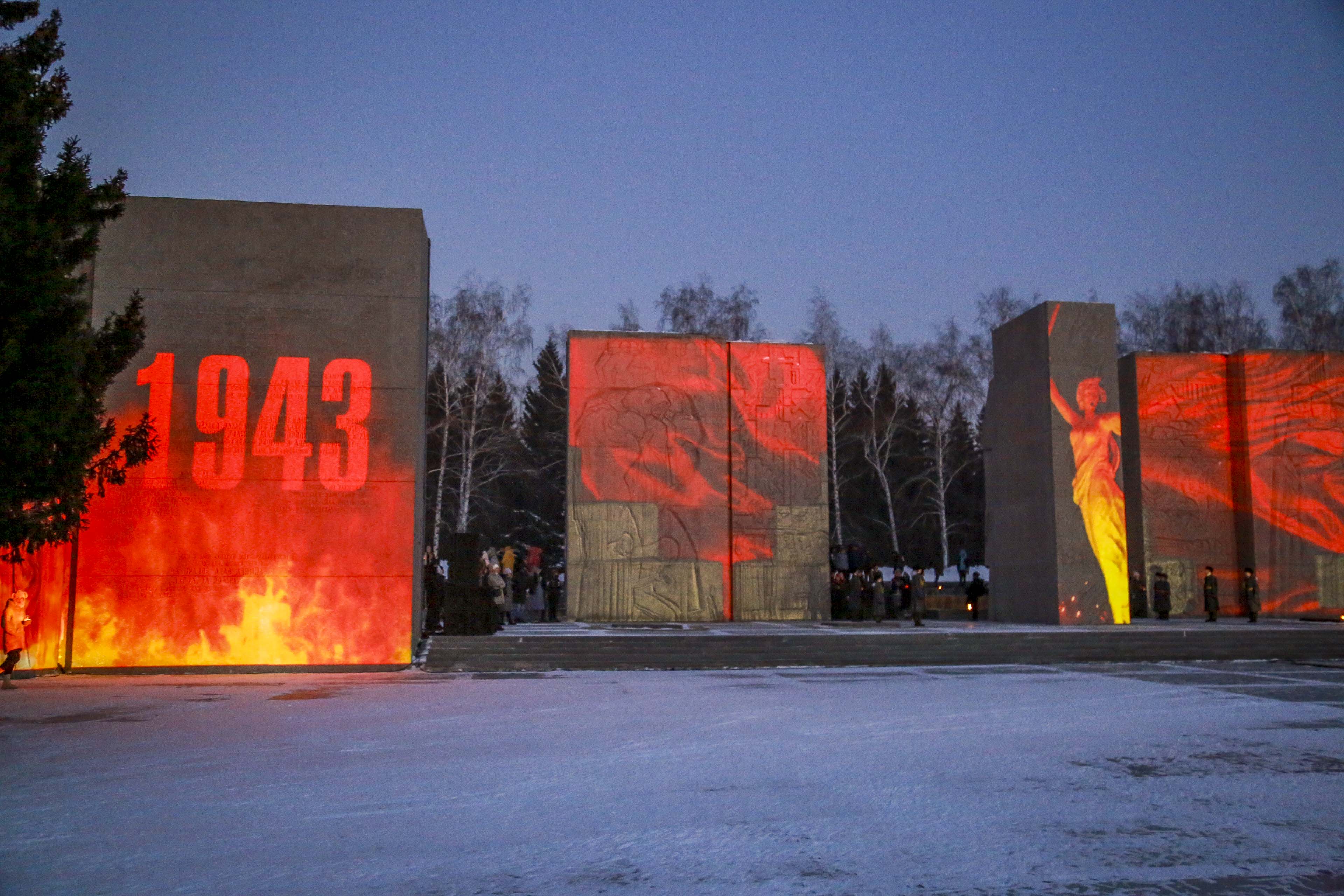 Новосибирцы зажгли свечи в память о героях, сражавшихся под Сталинградом с немецко-фашистскими захватчиками. Патриотическая акция прошла вечером 1 февраля на Монументе Славы.